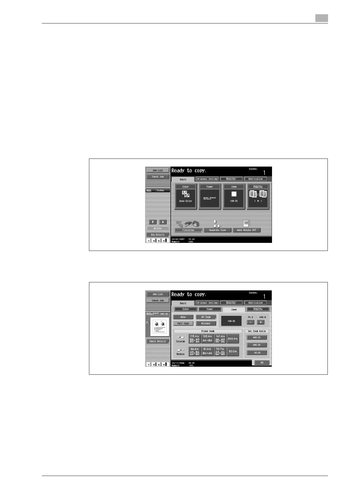 The zoom ratio can be set in order to make a copy on paper with a size different than the document or to