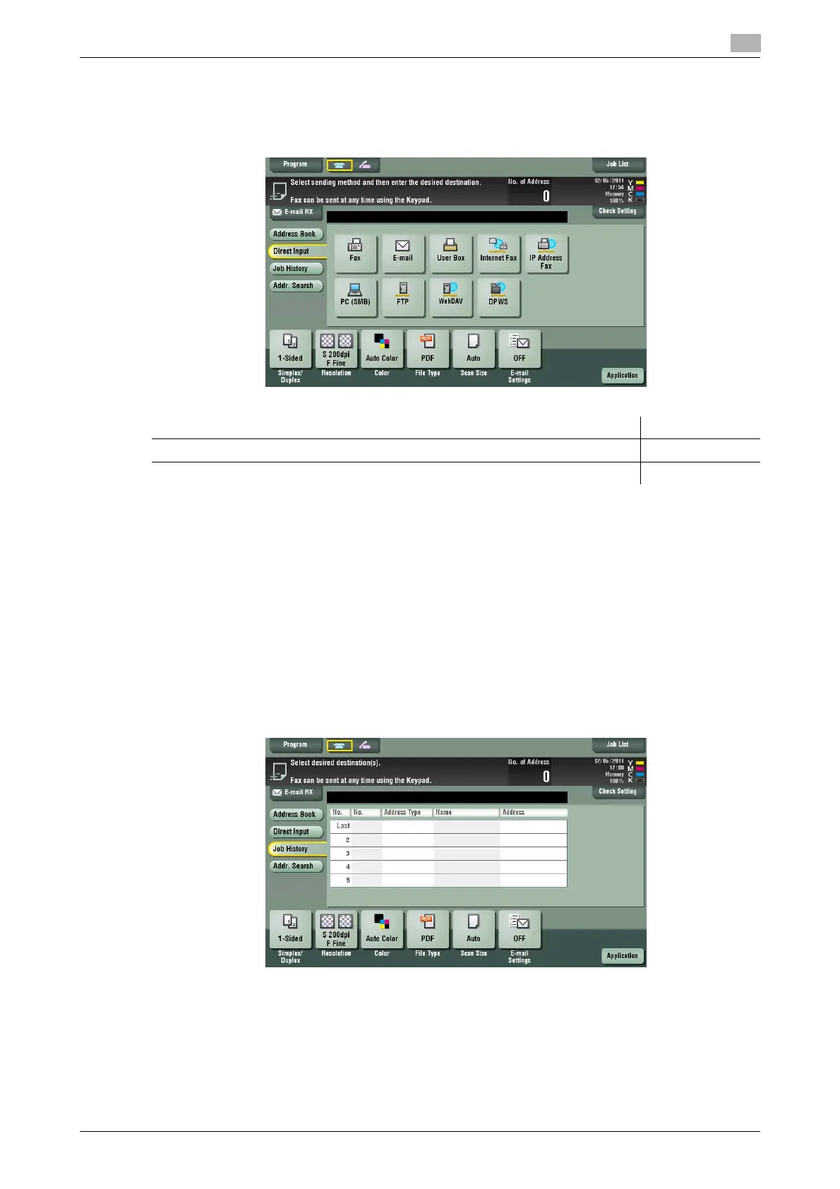 In [Job History], select a destination from the history of scan transmission destinations or saved destinations.