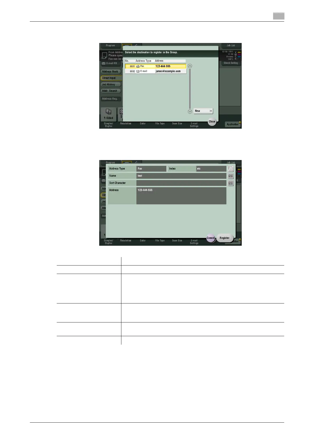 [Address Type] The destination type selected in the [Direct Input] are displayed.