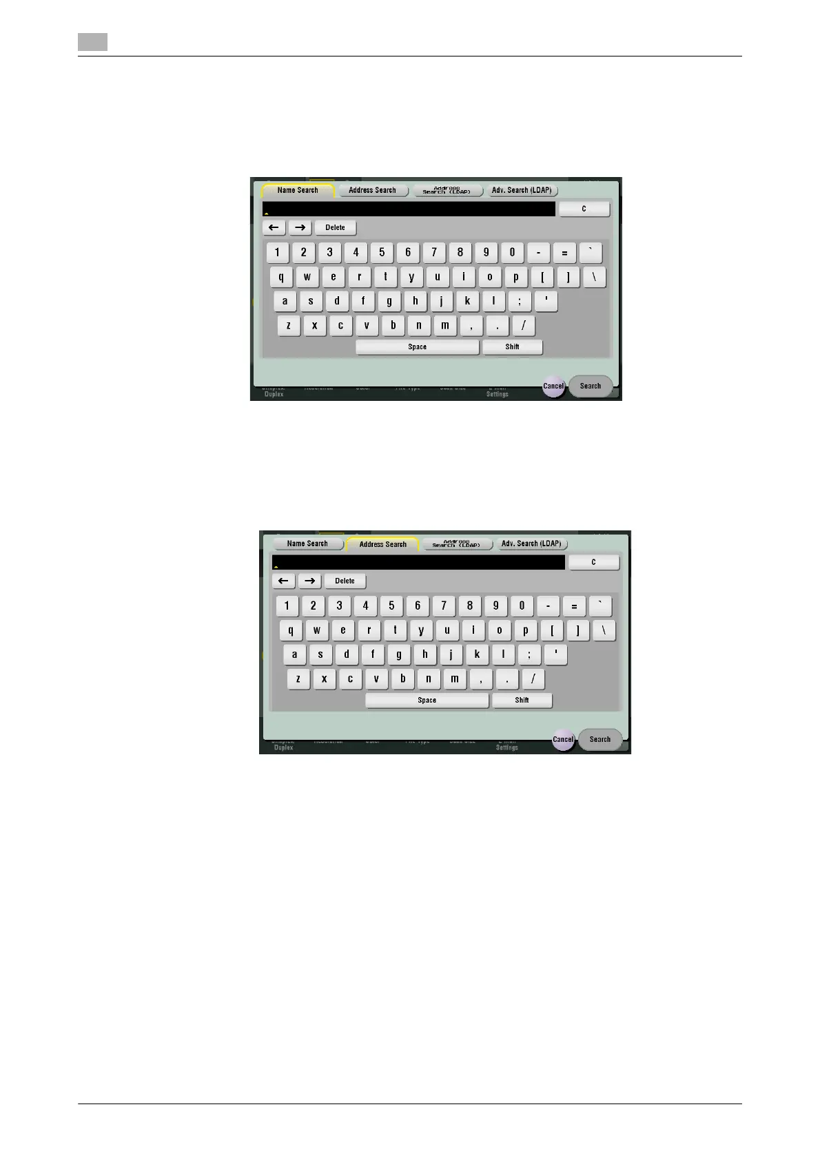 To display: [Scan/Fax] - [Addr. Search] - [Search] - [Name Search]