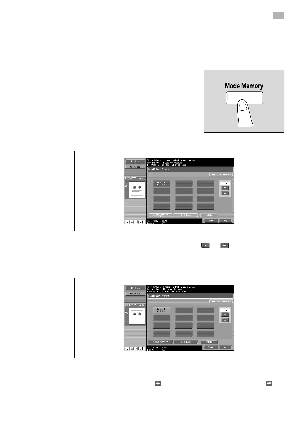 3 Touch the button for the copy program registered with the copy settings to be recalled.
