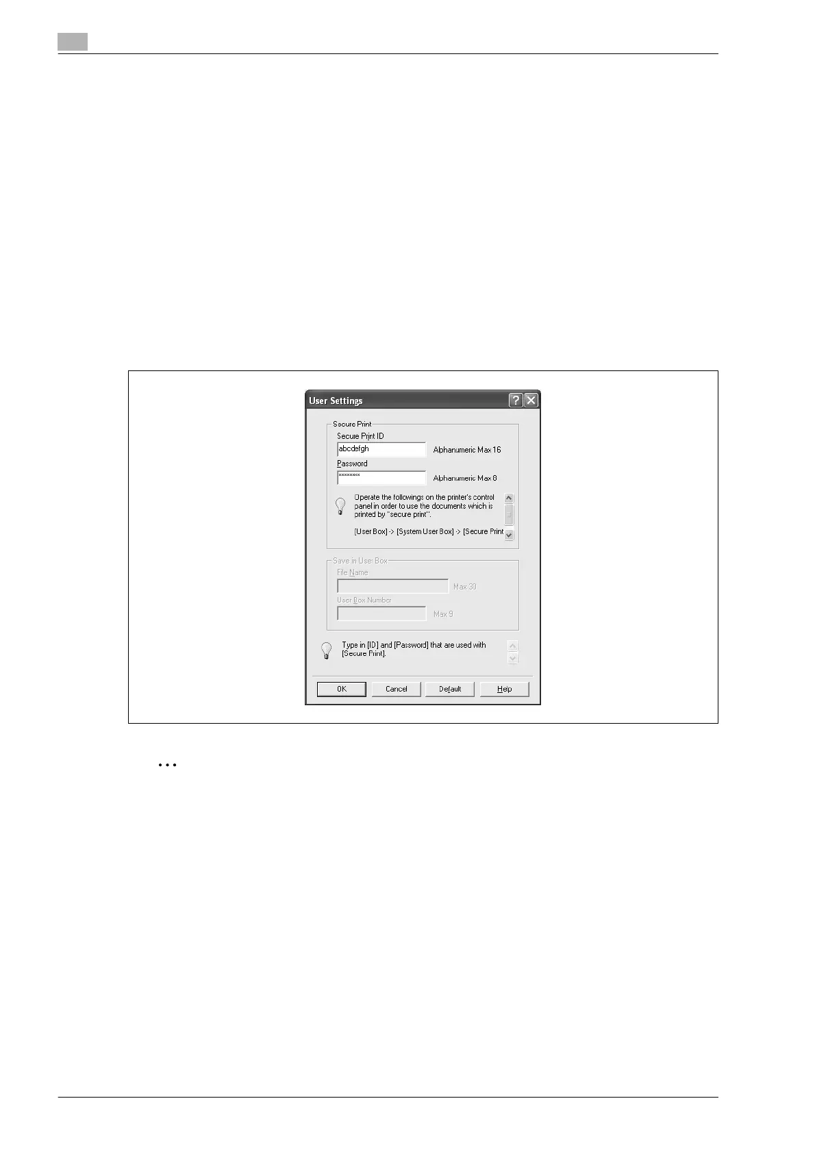 – Save in User Box: Saves the document to be printed in a box on this machine.
