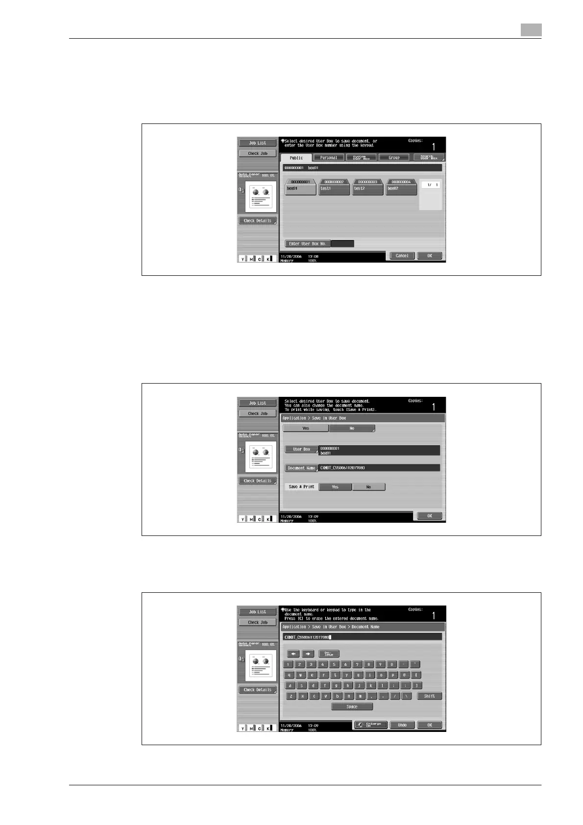 To type in a user box number to specify the user box, touch [Enter User Box No.].