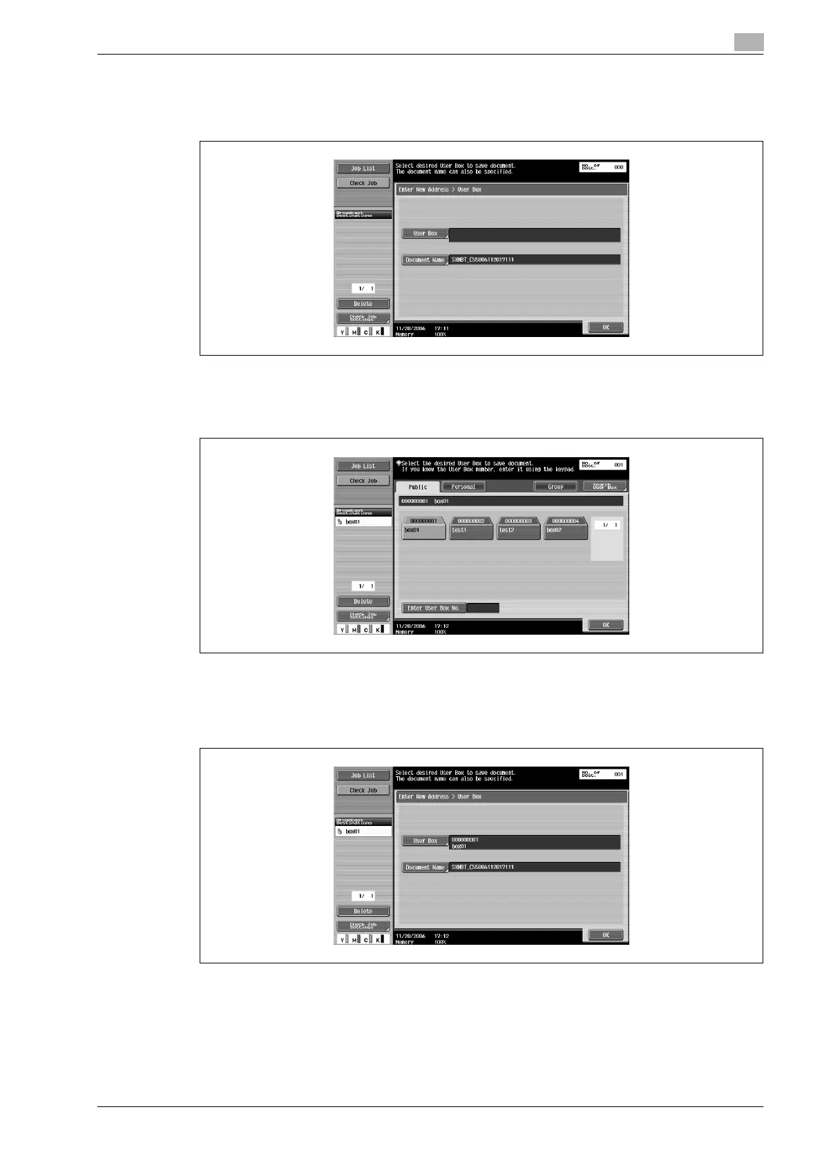 – To type in a user box number to specify the user box, touch [Enter User Box No.].