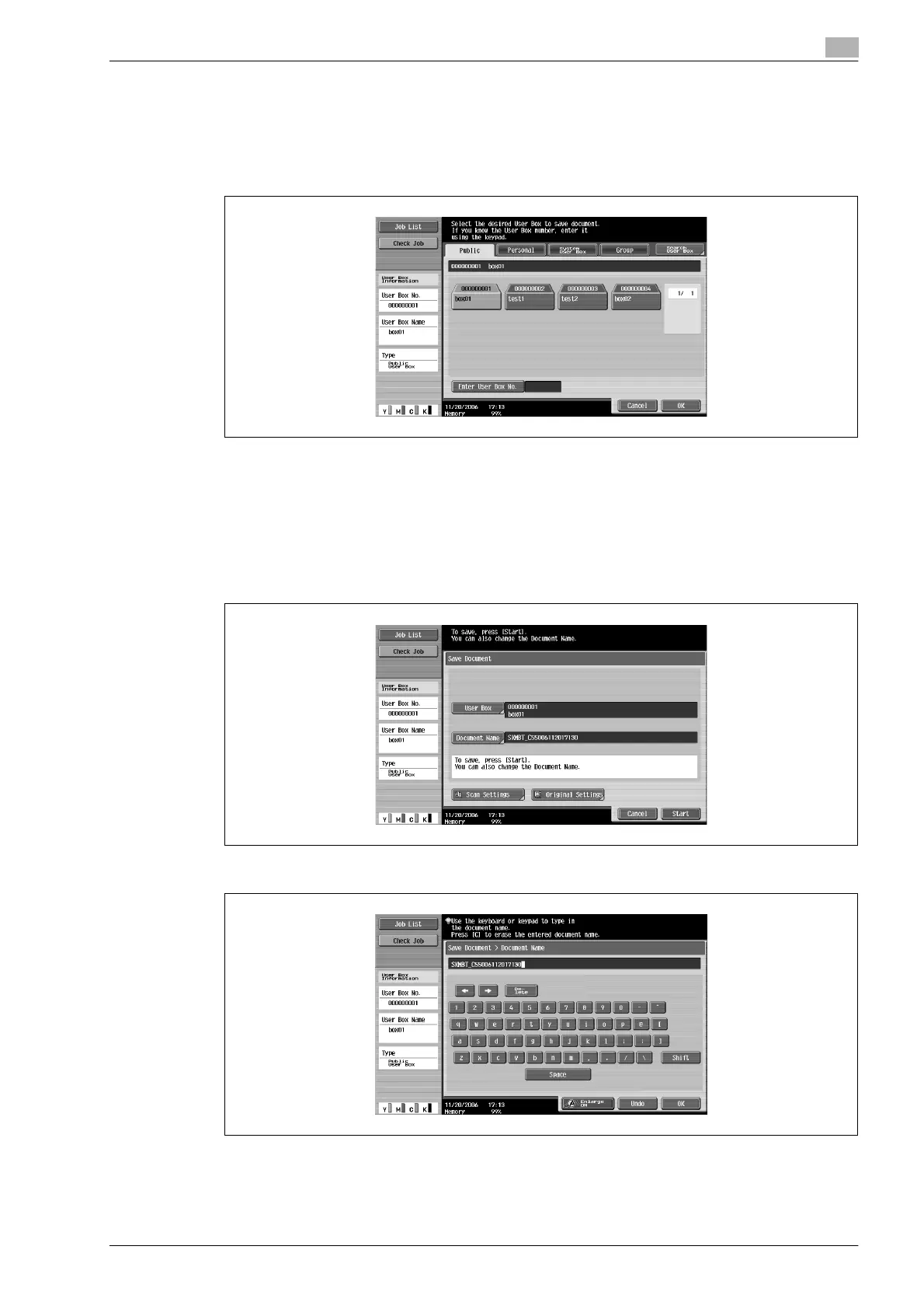 – To type in a user box number to specify the user box, touch [Enter User Box No.].