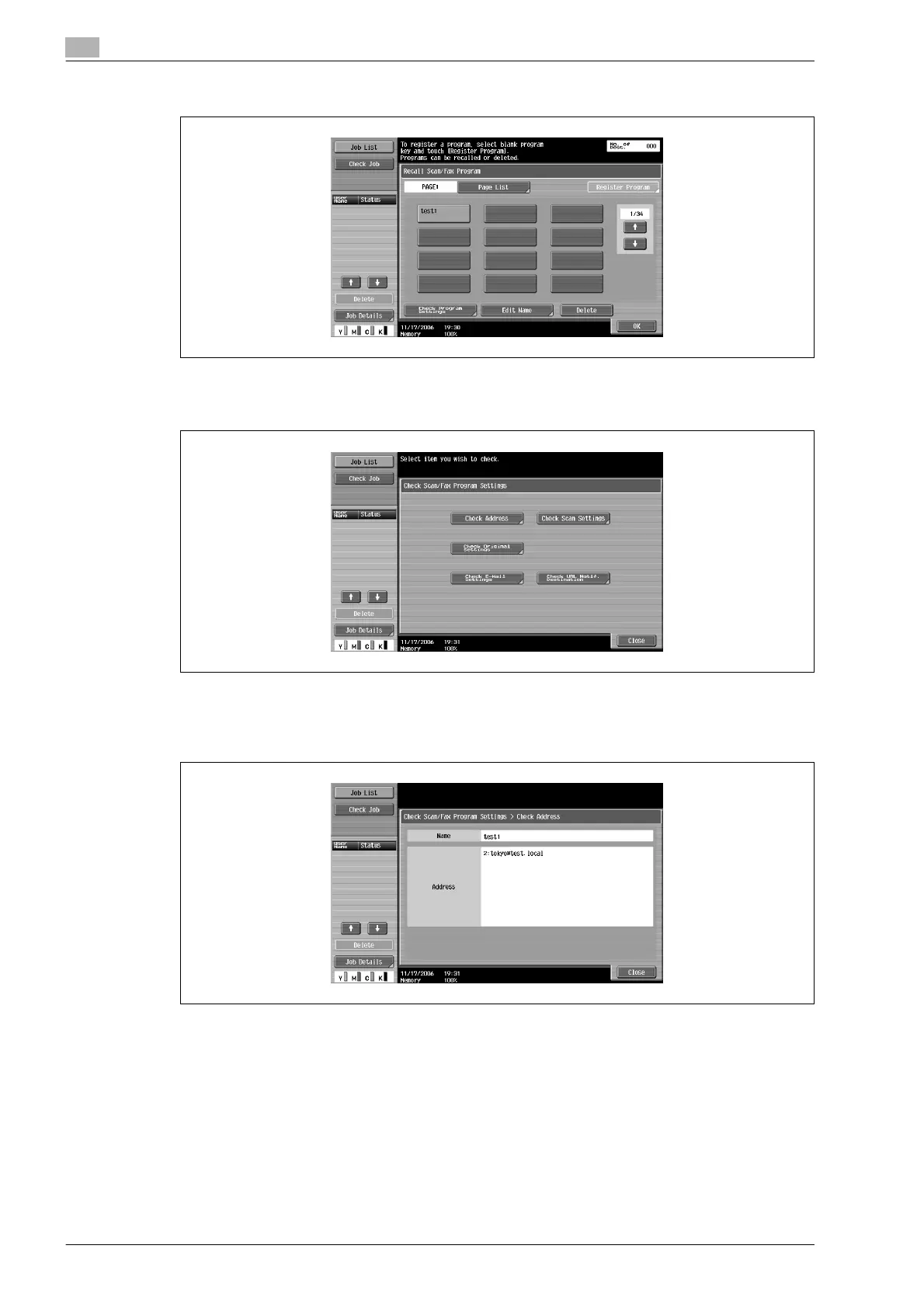 The Check Scan/Fax Program Settings screen appears.