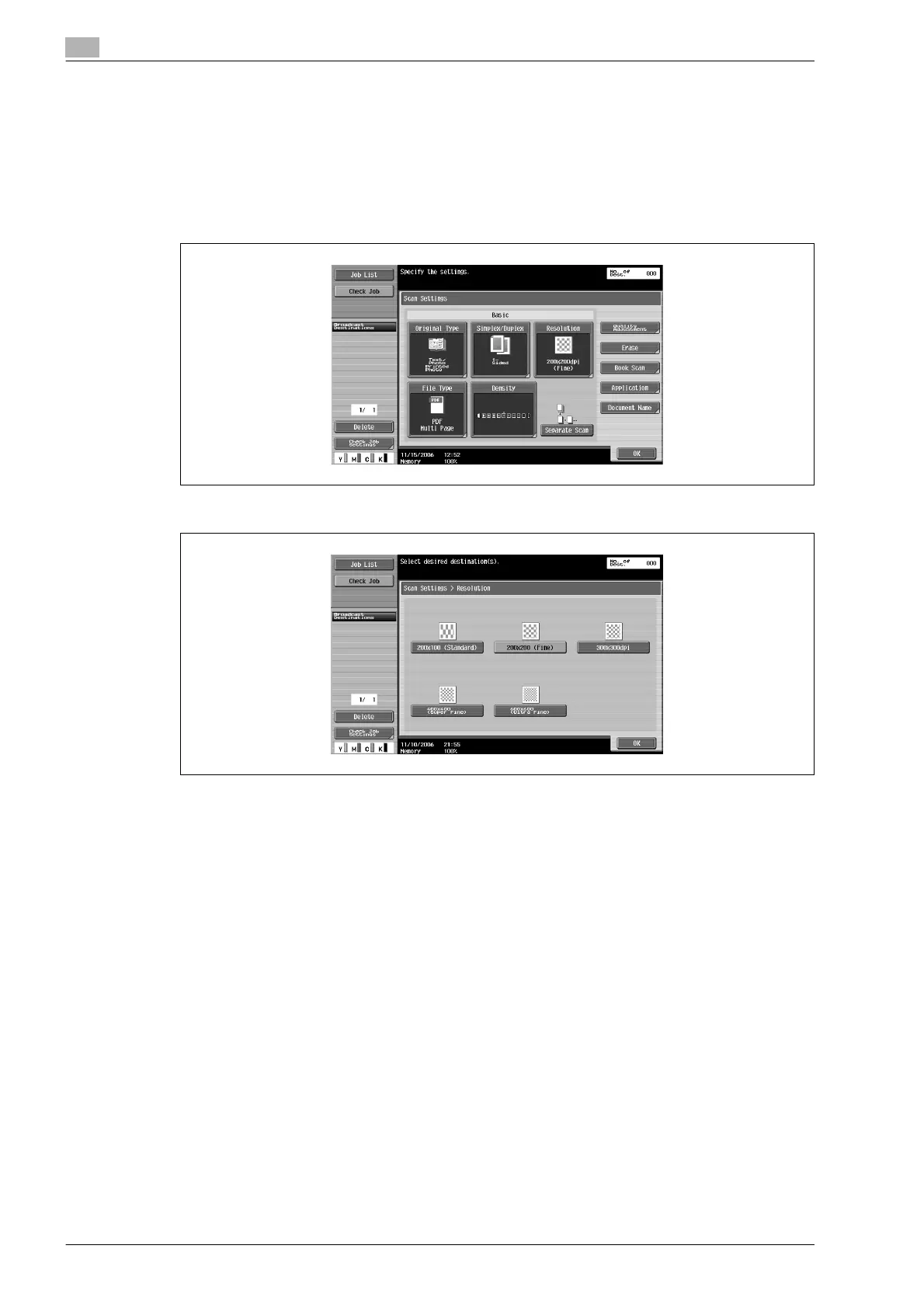 1 Touch [Scan Settings] in the Fax/Scan mode screen.