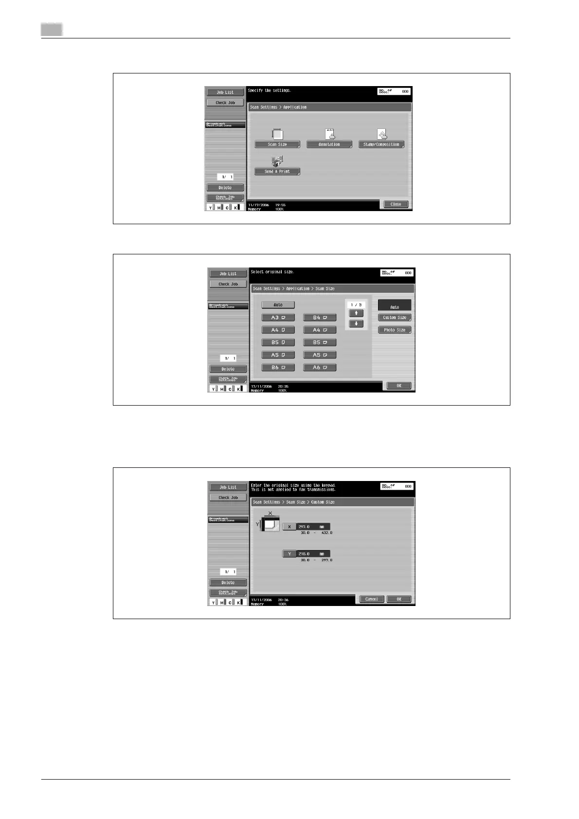 Touching [Custom Size] displays the Custom Size screen. Use the keypad to type in the size, and