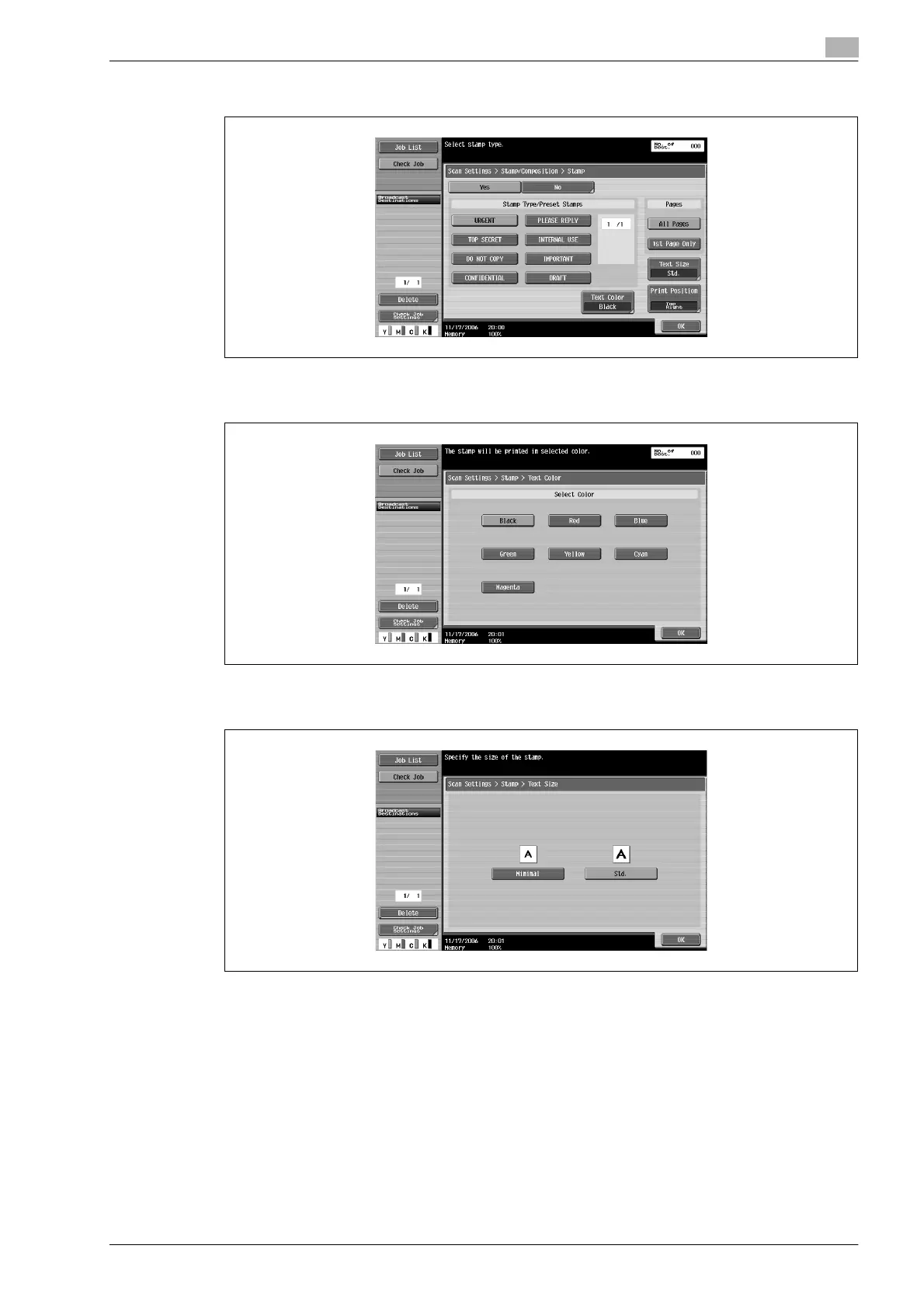 – Touching [Text Size] displays a screen for specifying the text size. Touch the button for the desired