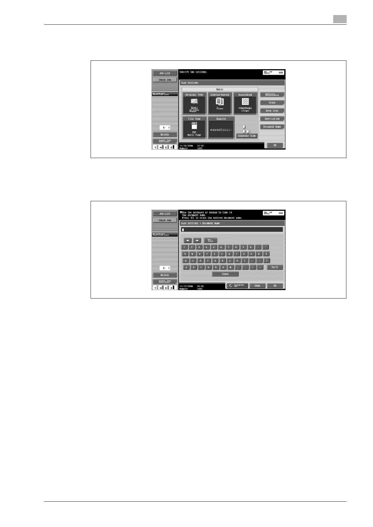 3 Using the keyboard that appeared in the touch panel, type in the document name.