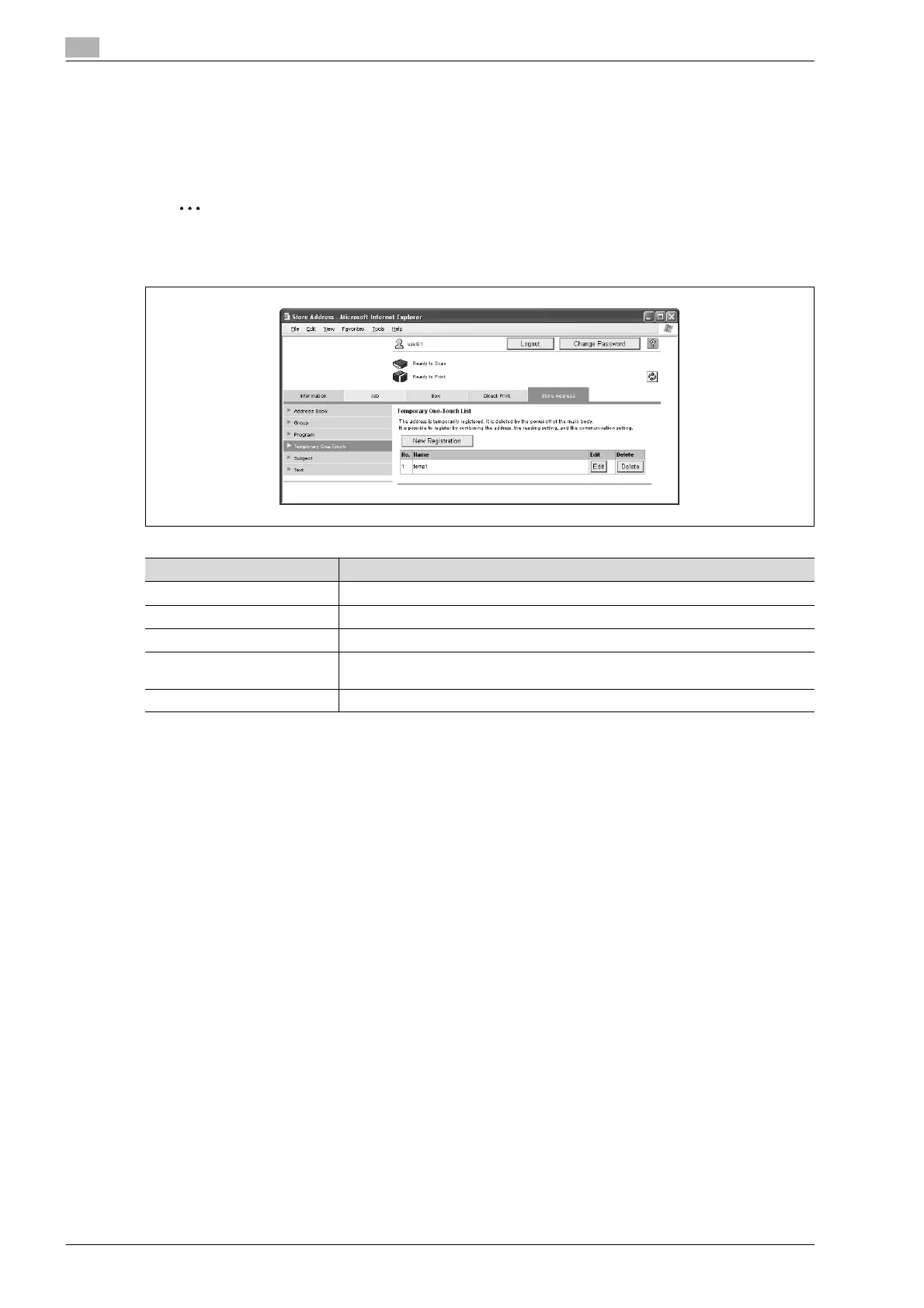 [Delete] button Click this button to display a page to delete the registered temporary program.