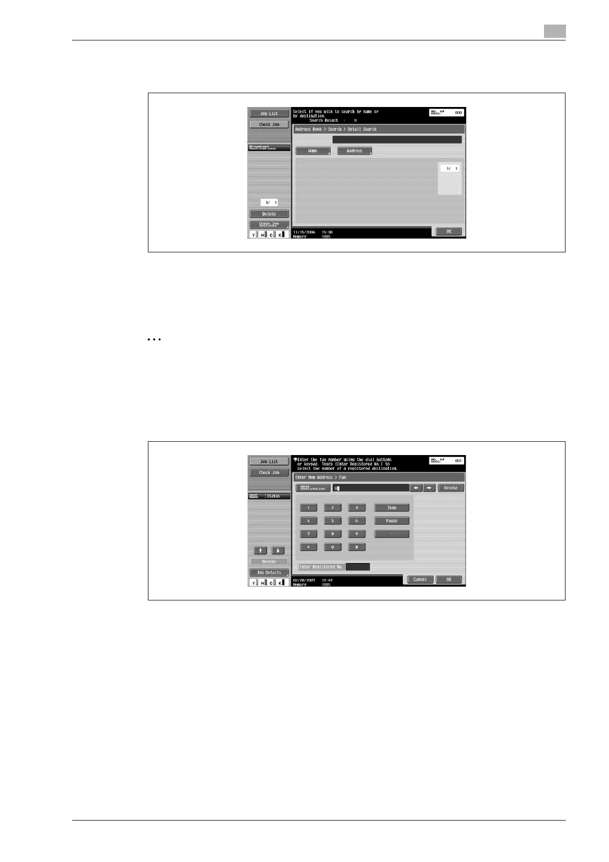 – Enter the name or fax number using the keyboard displayed on the screen and touch [OK].