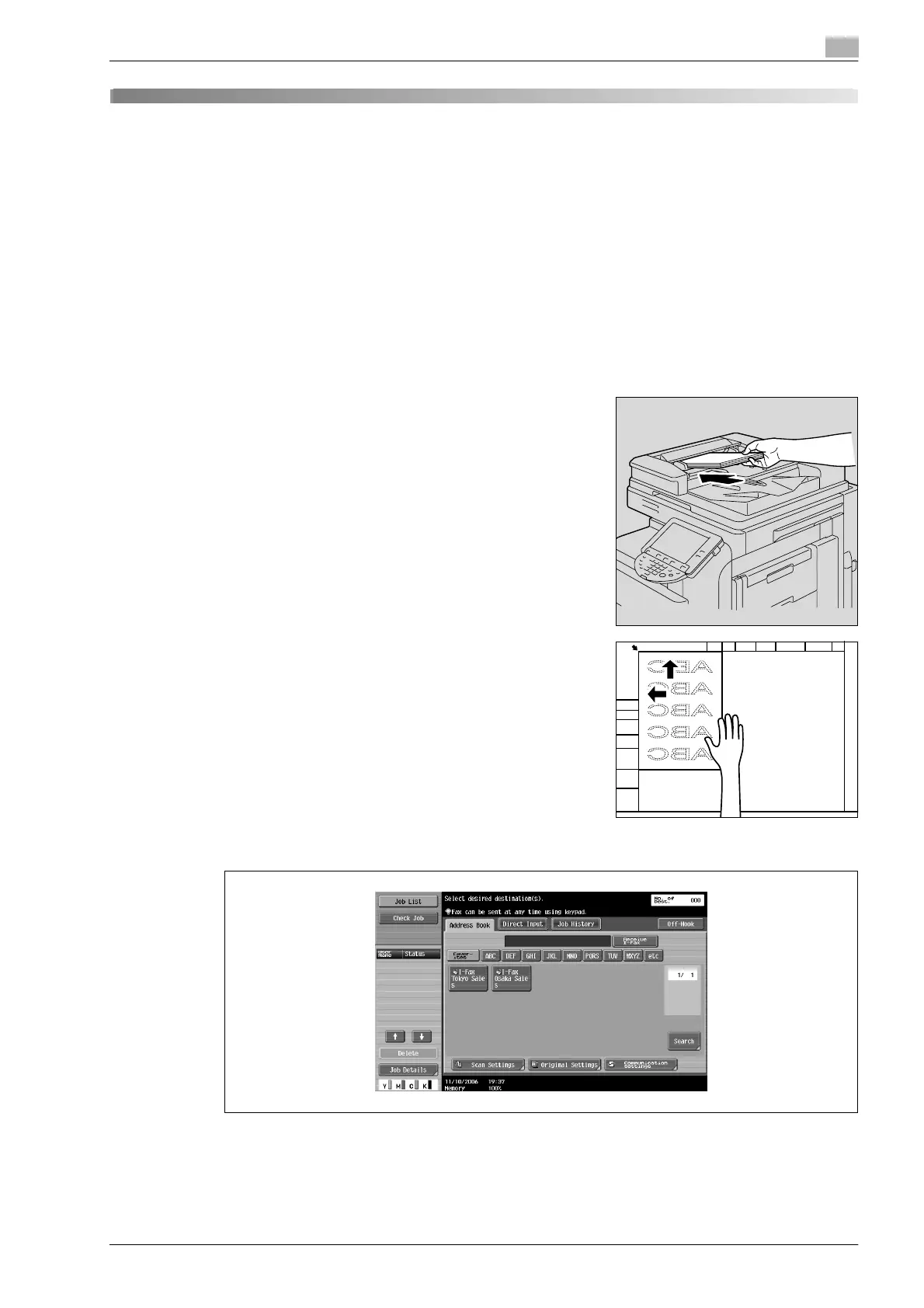 The procedure for faxing a single-sided original using basic operations is explained here. Various