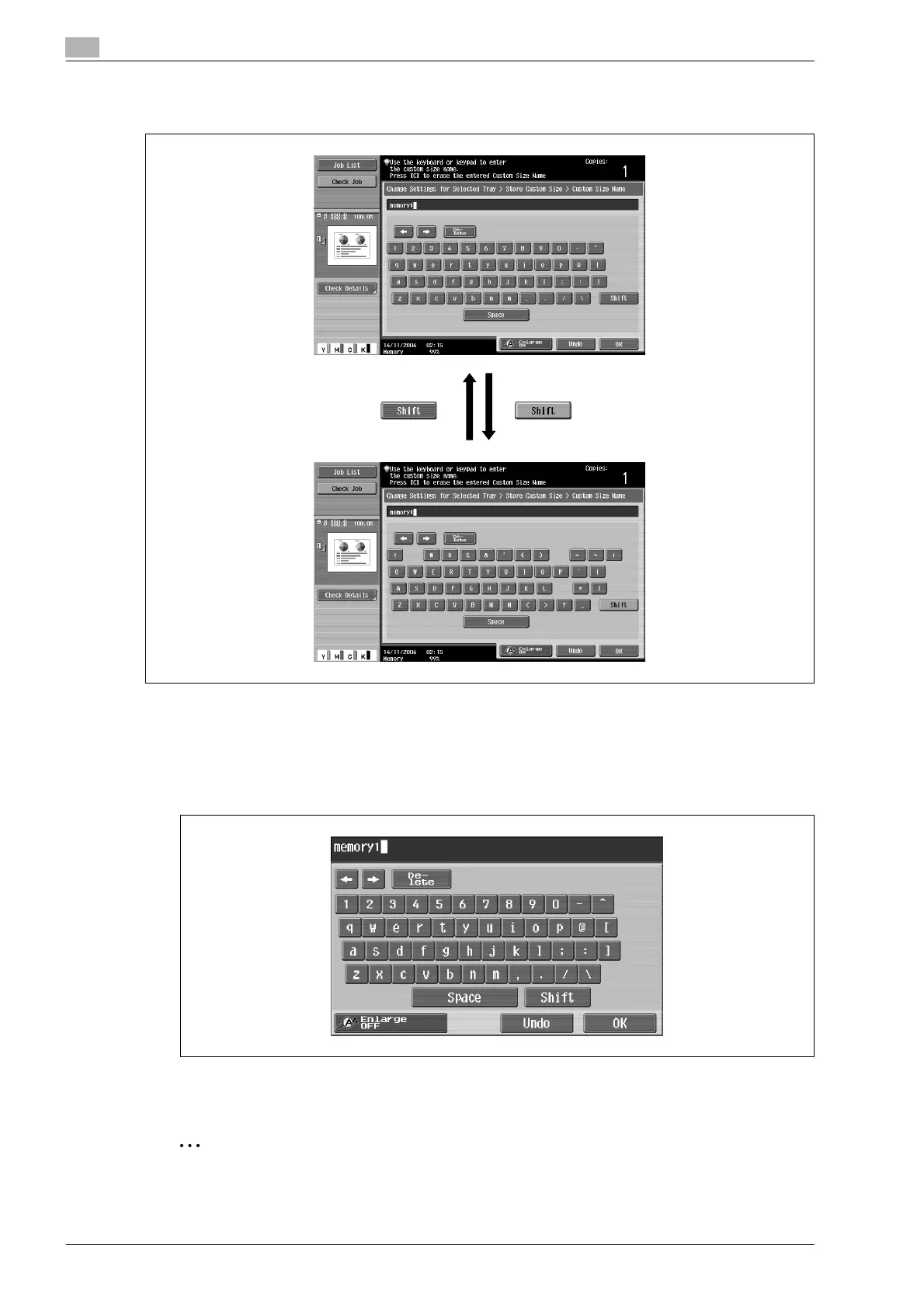 Touching [Shift] switches the keyboard display between lowercase letters (numbers) and uppercase letters