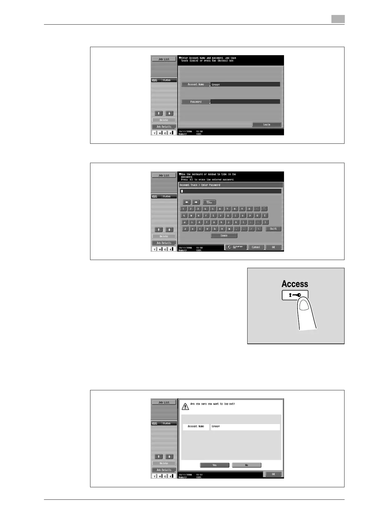 5 Touch [Login] or press the [Access] key.