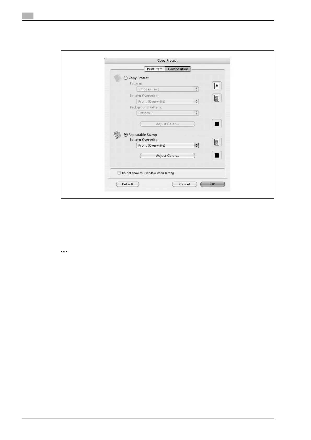 – Pattern Overwrite: Specifies the order for printing a pattern on the original document.