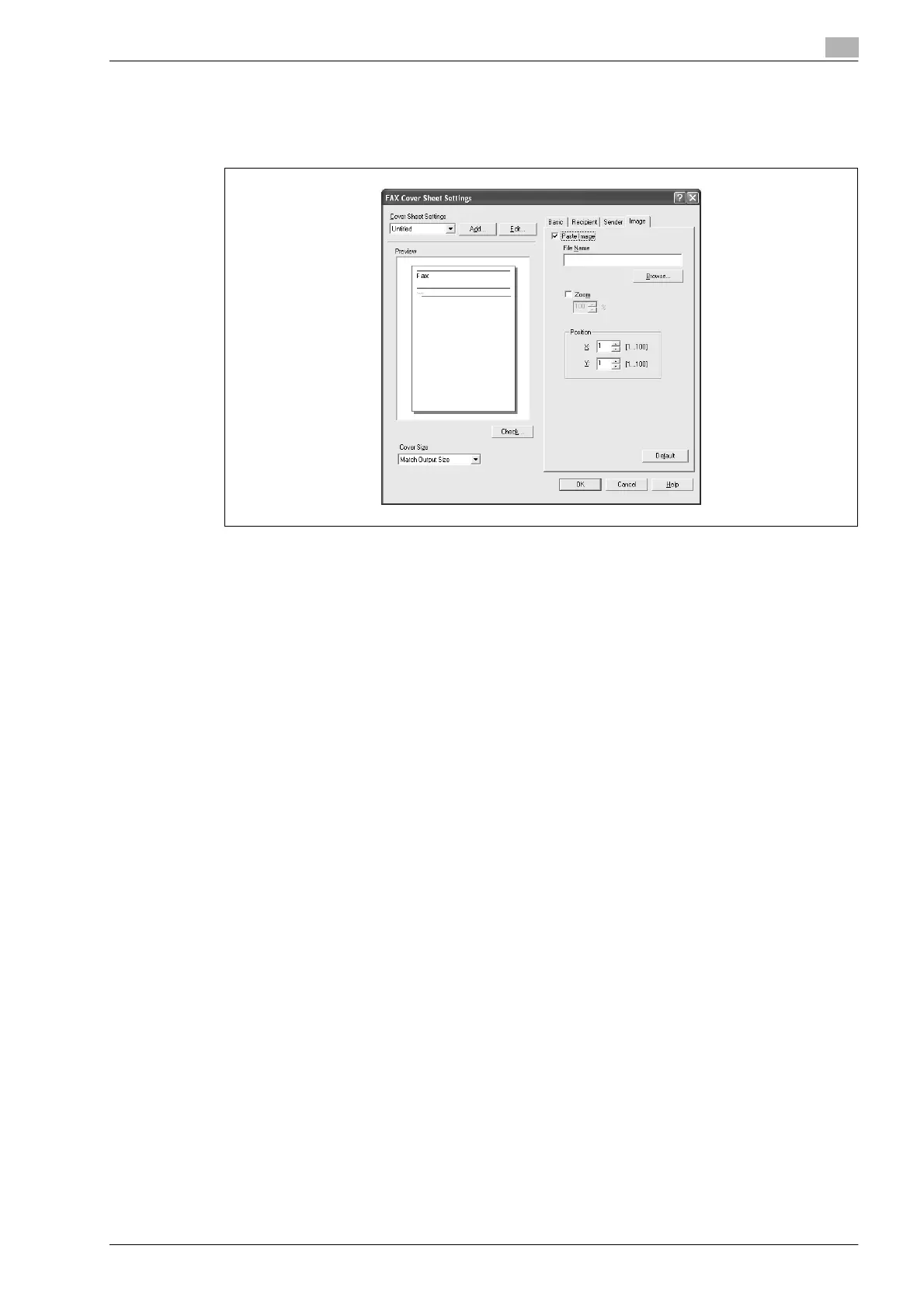 7 To place graphics such as a company logo or map on a cover sheet, specify the image file on the Image