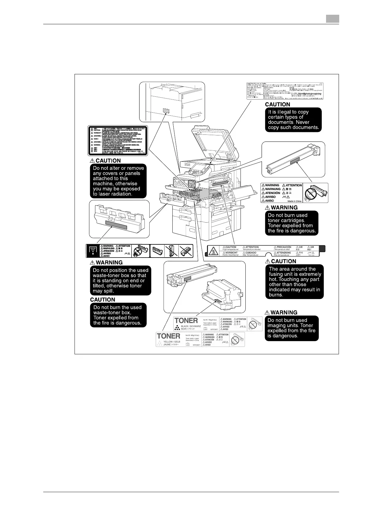 Be very careful that an accident does not occur when operations such as removing paper misfeeds are