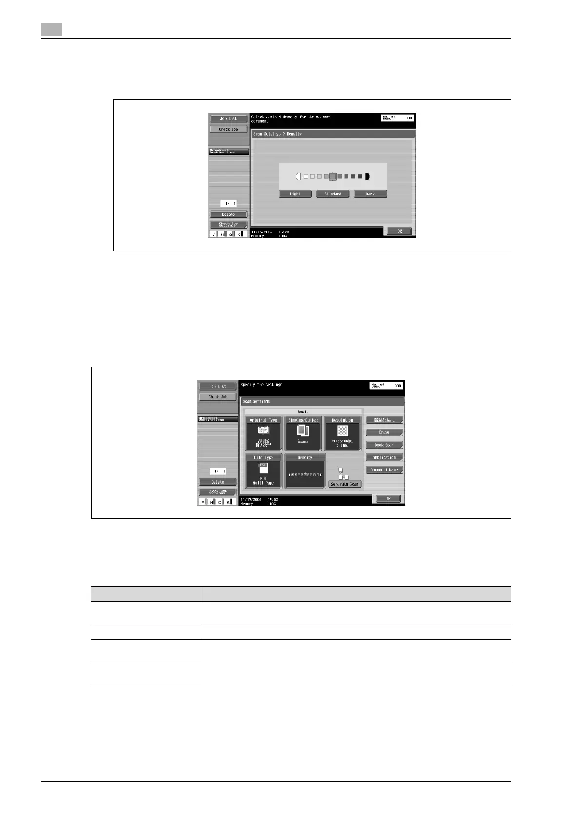 To adjust the density, touch [Light] or [Dark].