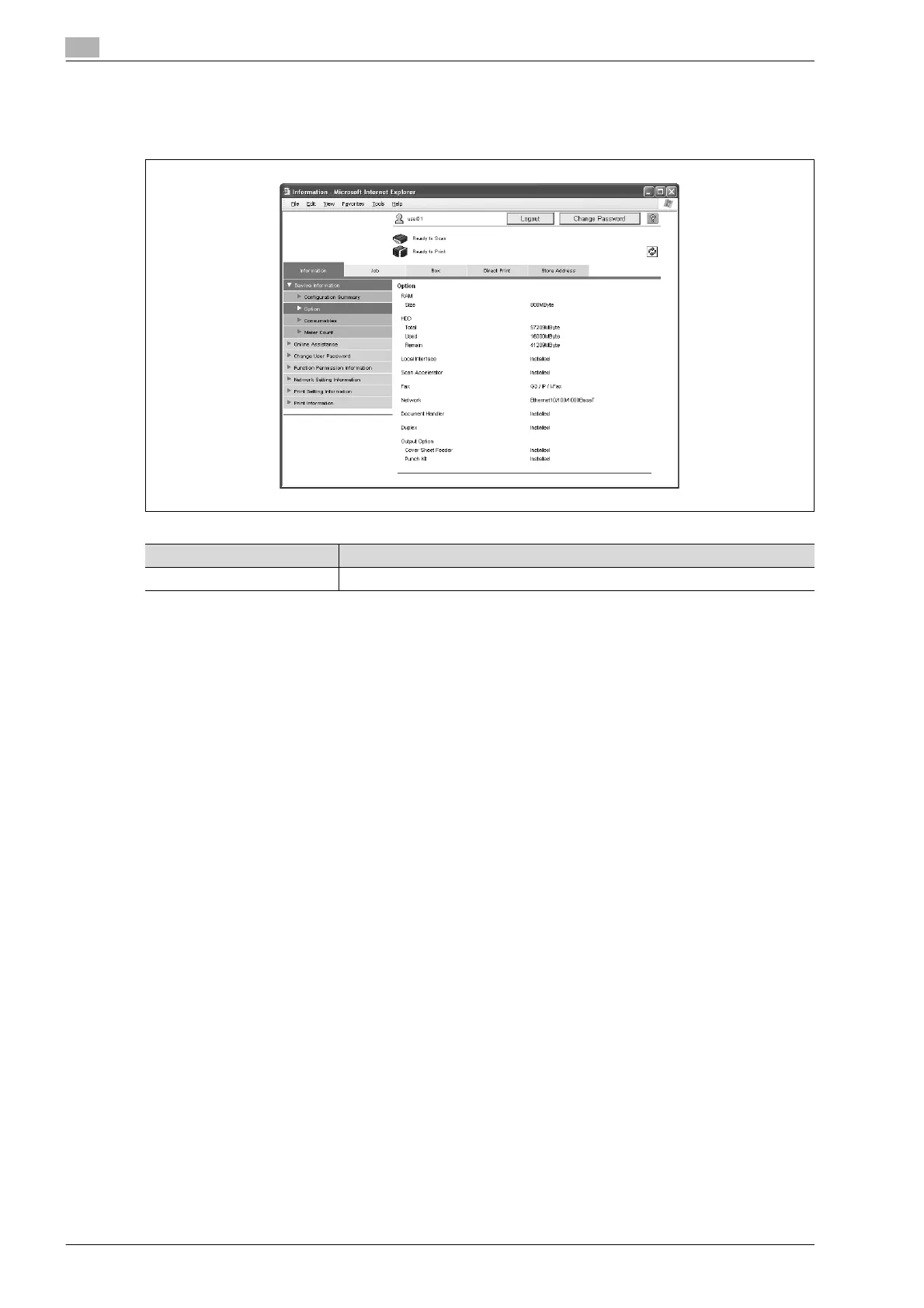 The size of the machine’s memory, the hard disk status, and the installation status of options can be