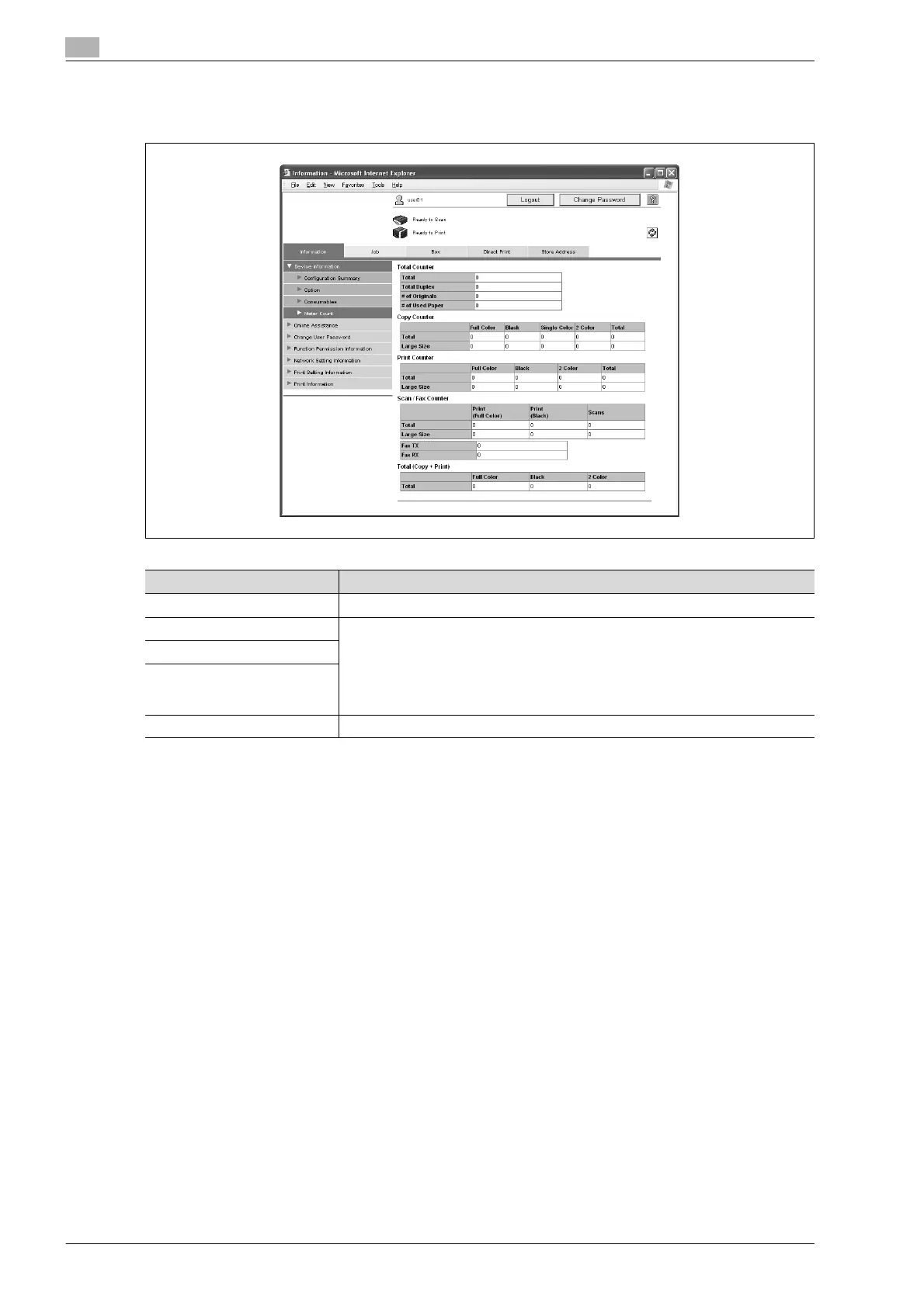 Total Counter Displays totals for the output counters (Copy, Print, Scan/Fax).