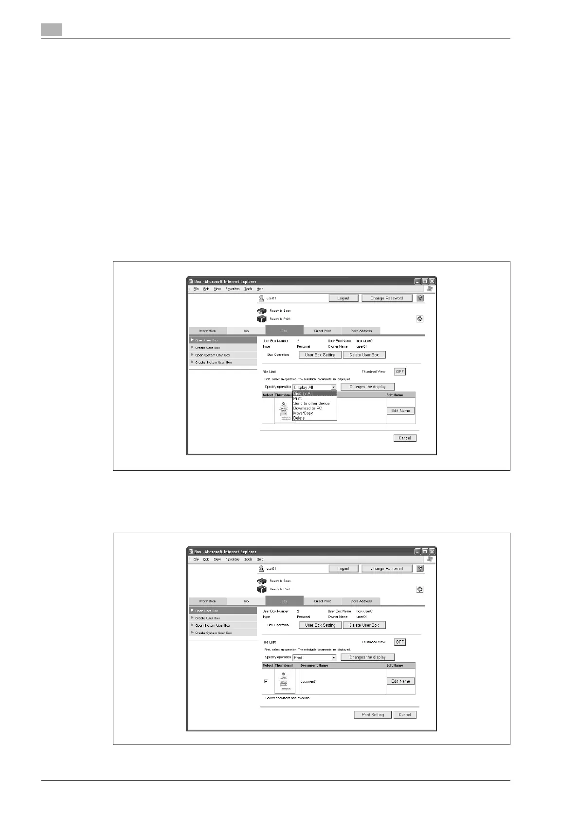 2 Select the check box beside the documents with which the operation is to be performed, and then click