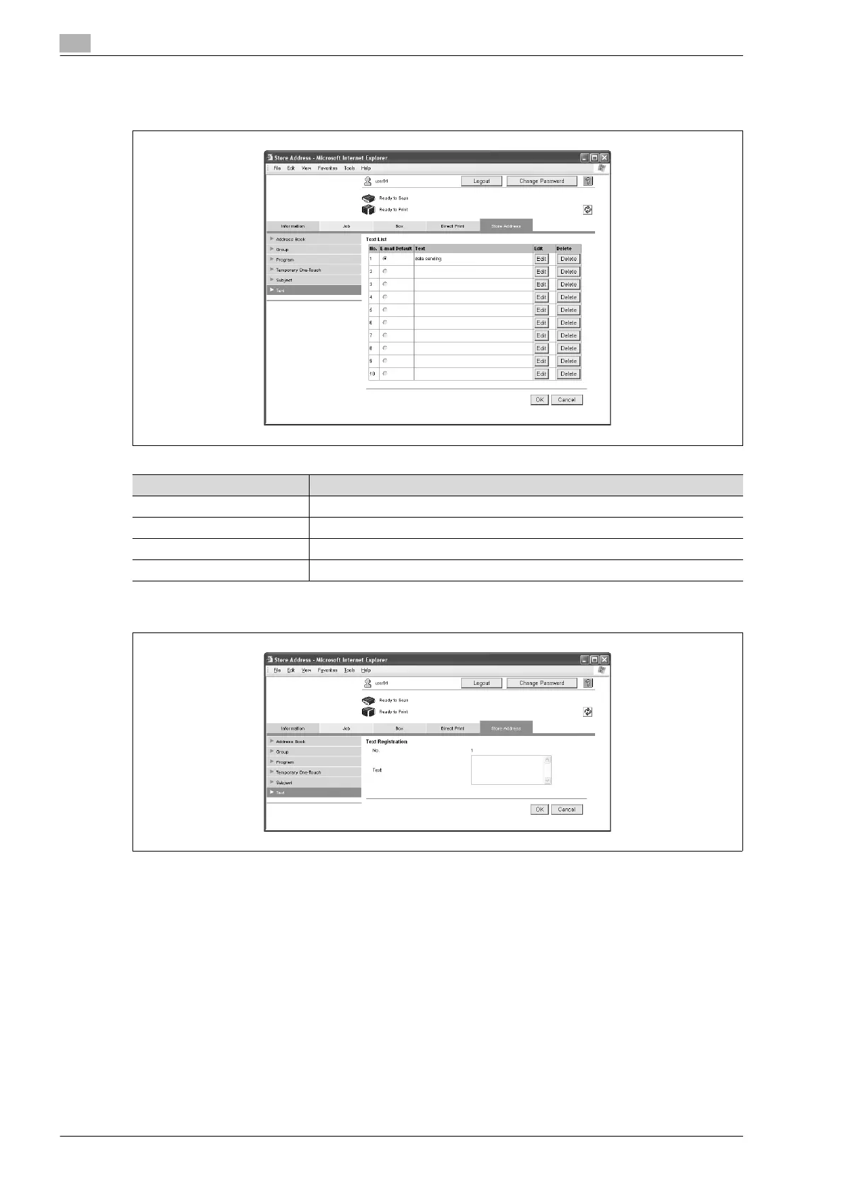 [Delete] button Click this button to display a page to delete the registered e-mail text.