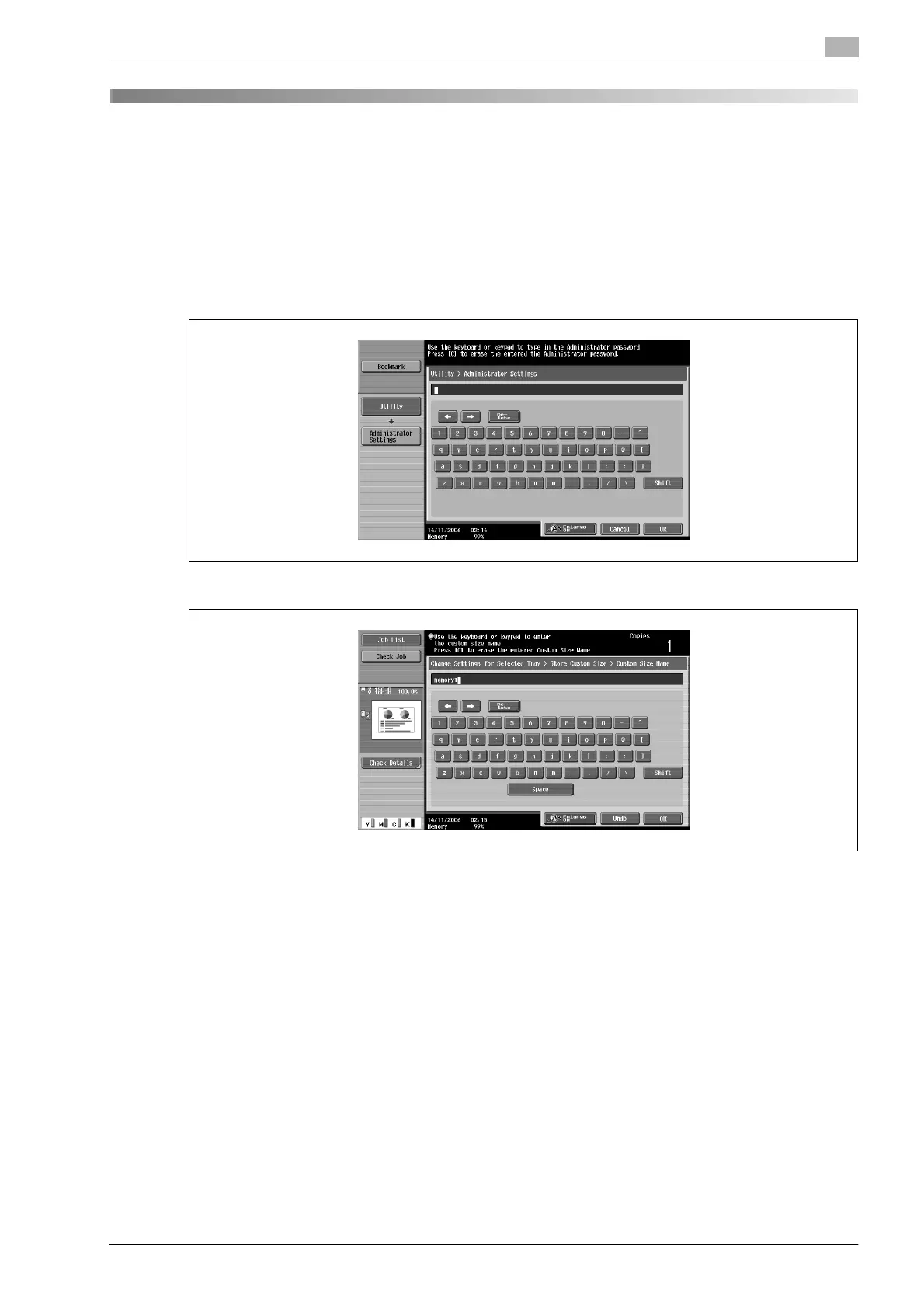 The following procedure describes how to use the keyboard that appears in the touch panel for typing in the