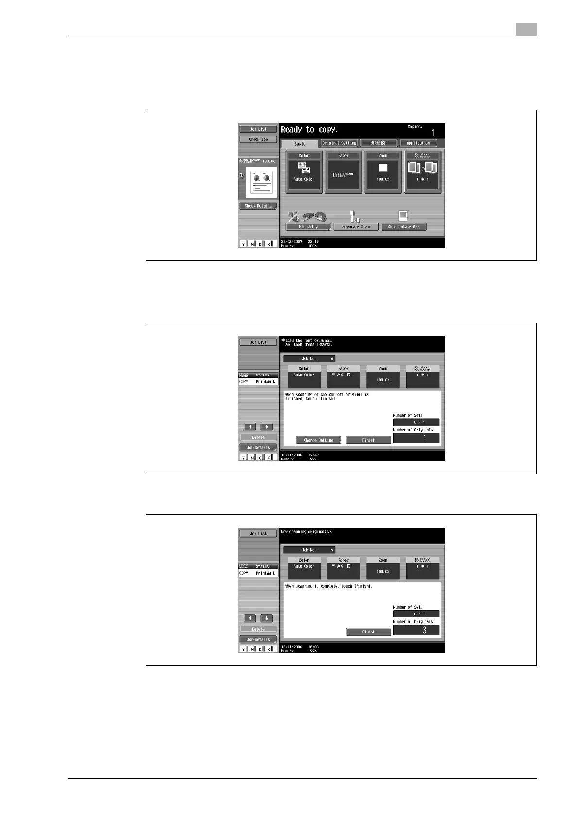 – If the "Separate Scan Output Method" parameter is set to "Batch Print", touch [Finish] in the
