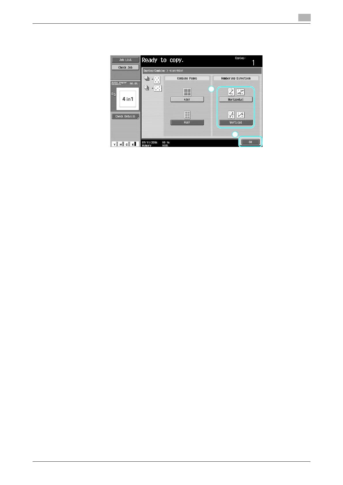 If "4in1" or "8in1" is selected, the page arrangement can be selected.