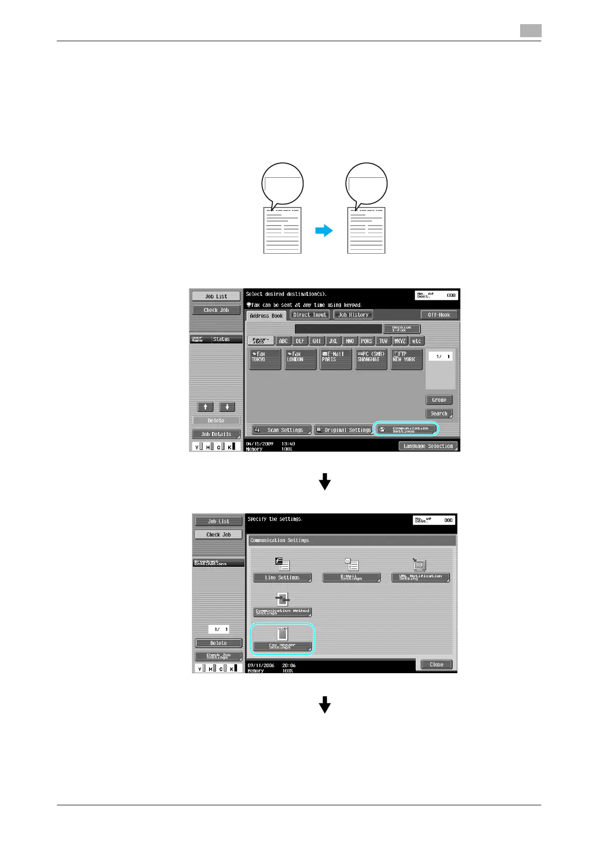 Fax transmission source information settings