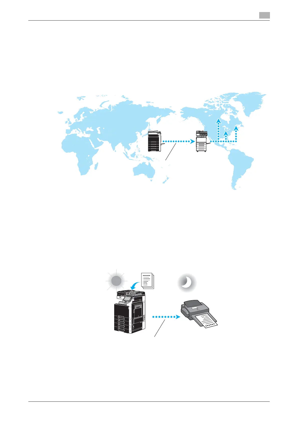 Destination settings can be specified and the document can be scanned during the day, and the transmission