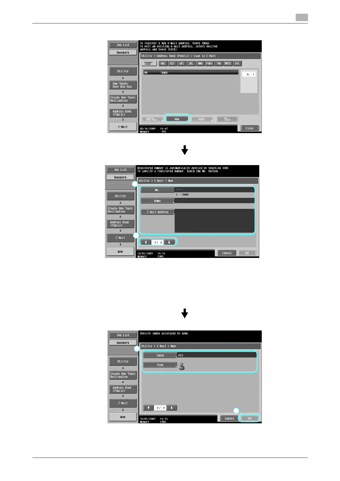Index: Select the index characters used for organizing the e-mail addresses. By selecting index char-