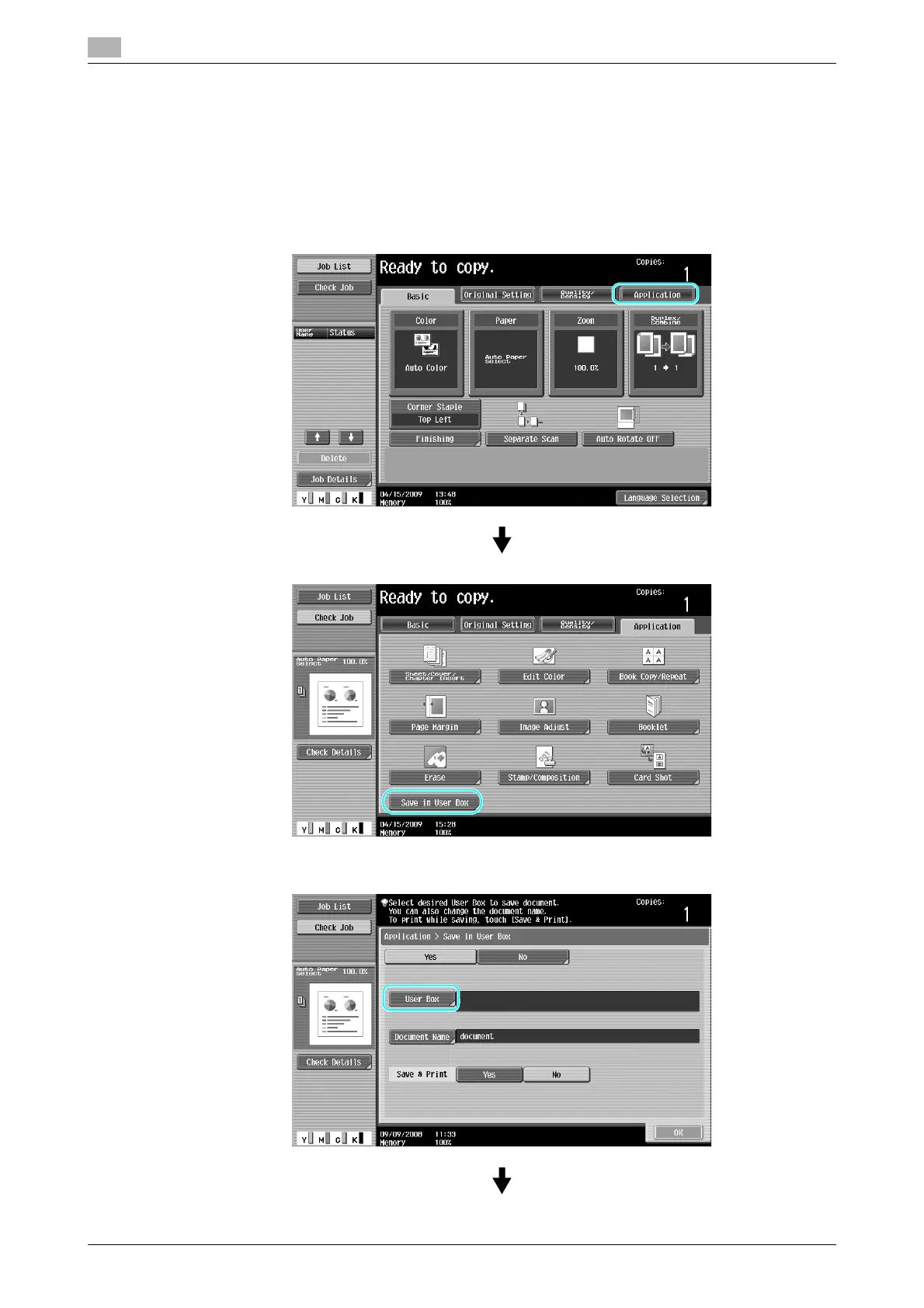 Develop ineo+280 - Basic Box Operation (Saving Data in a User Box); Saving Data in a User Box with a Copy Mode Operation