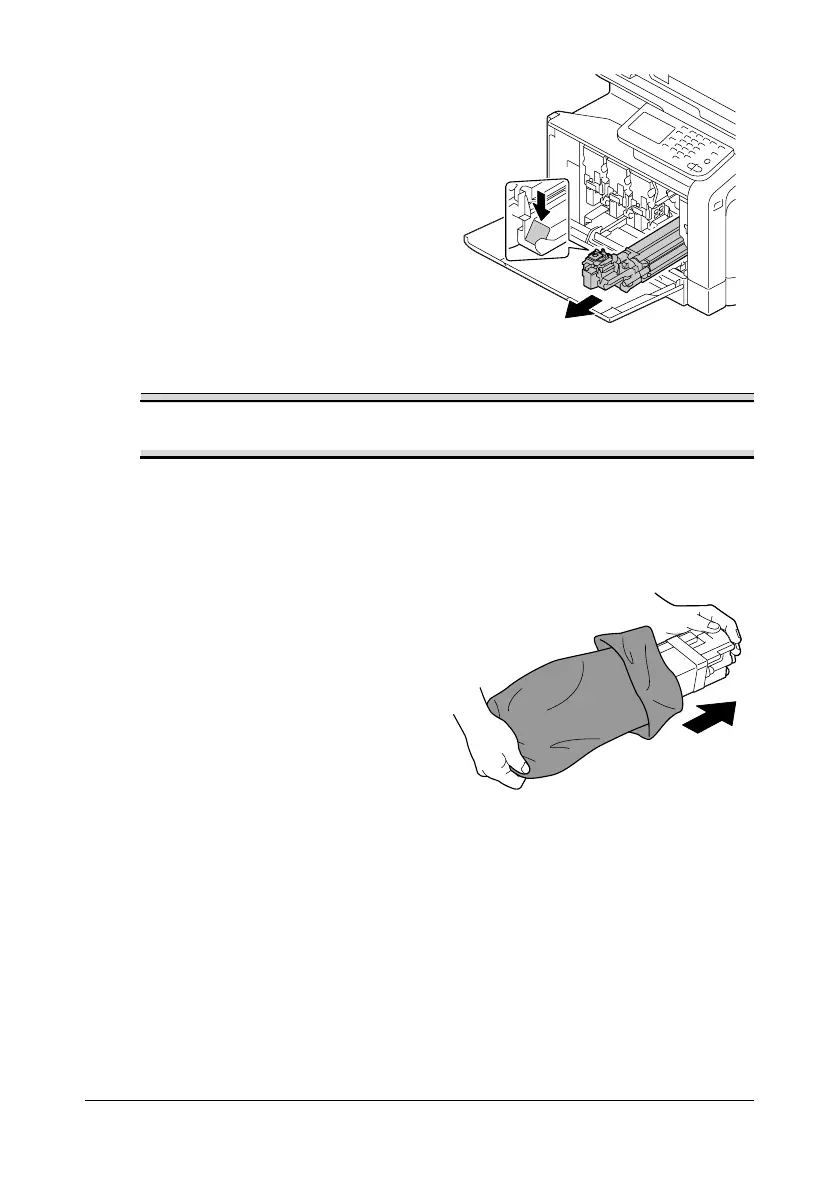 " In order to prevent toner from spilling, leave the imaging unit in the
