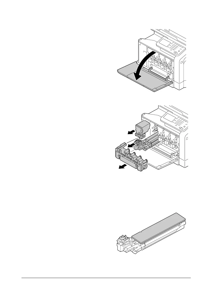 " Do not tilt removed waste toner box, otherwise waste toner may spill.