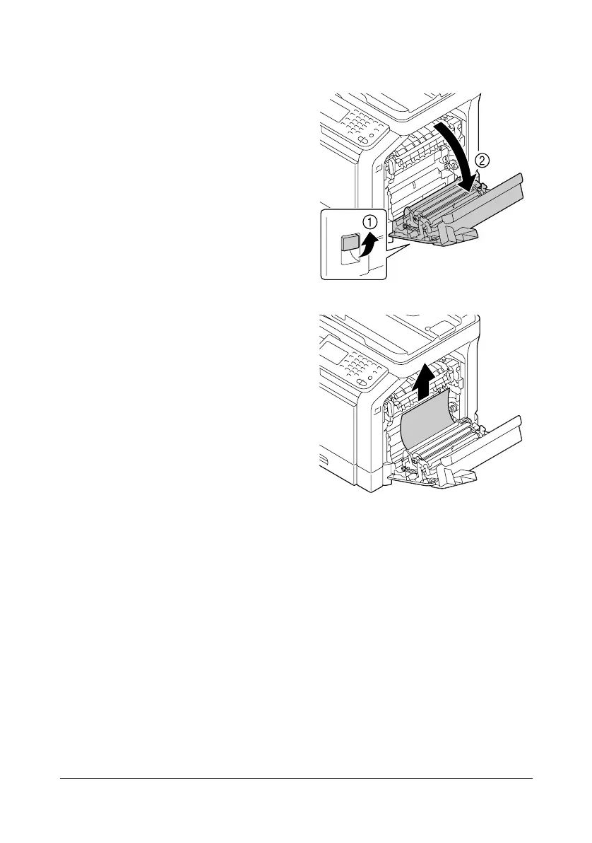Develop ineo+35 - Clearing a Media Misfeed from Tray 1 (Manual Feed Tray) and Transfer Roller
