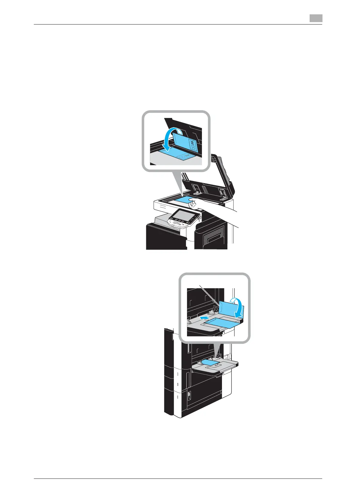 When copying onto envelopes, the orientation of the document and paper is extremely important.