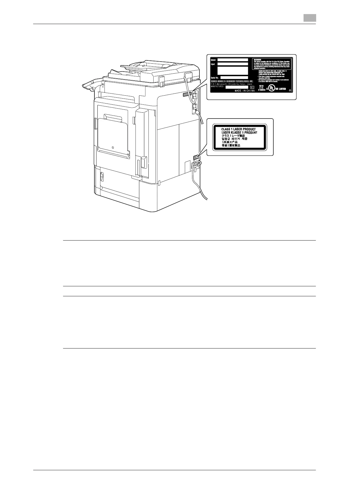A laser safety label is attached to the outside of the machine, as shown below.