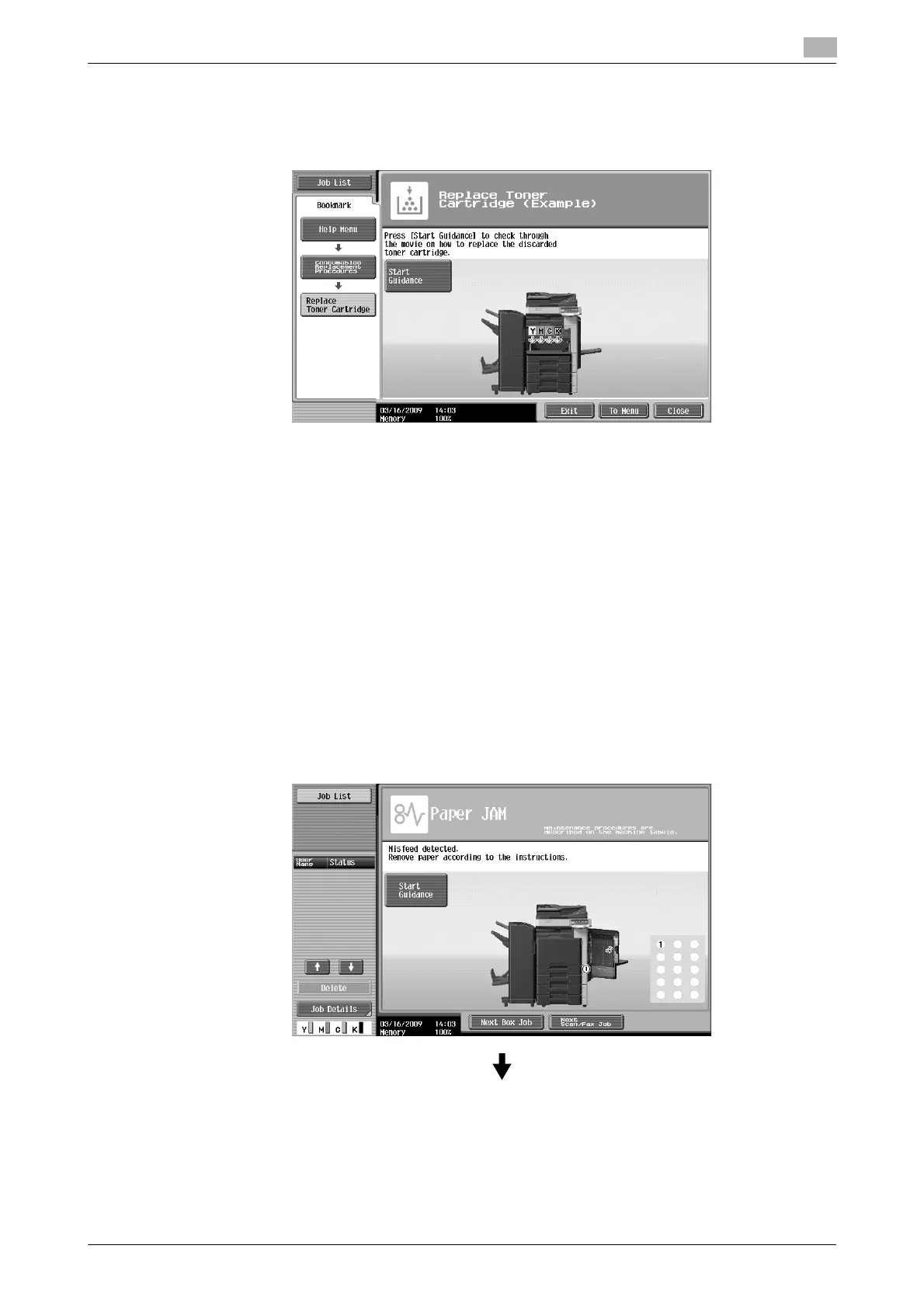 For details on the Guidance screen, refer to chapter 4 of the [User's Guide Copy Operations].