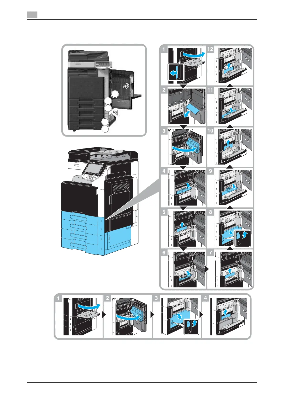 To close the upper right-side door, press the center of the upper right-side door to securely close the door.