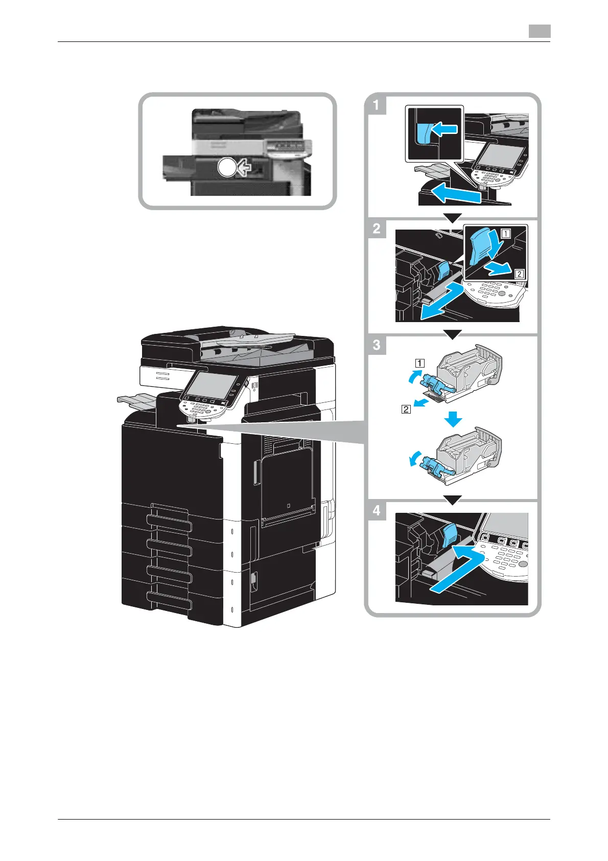 The following procedure describes how to clear staple jams that have occurred in finisher FS-529.