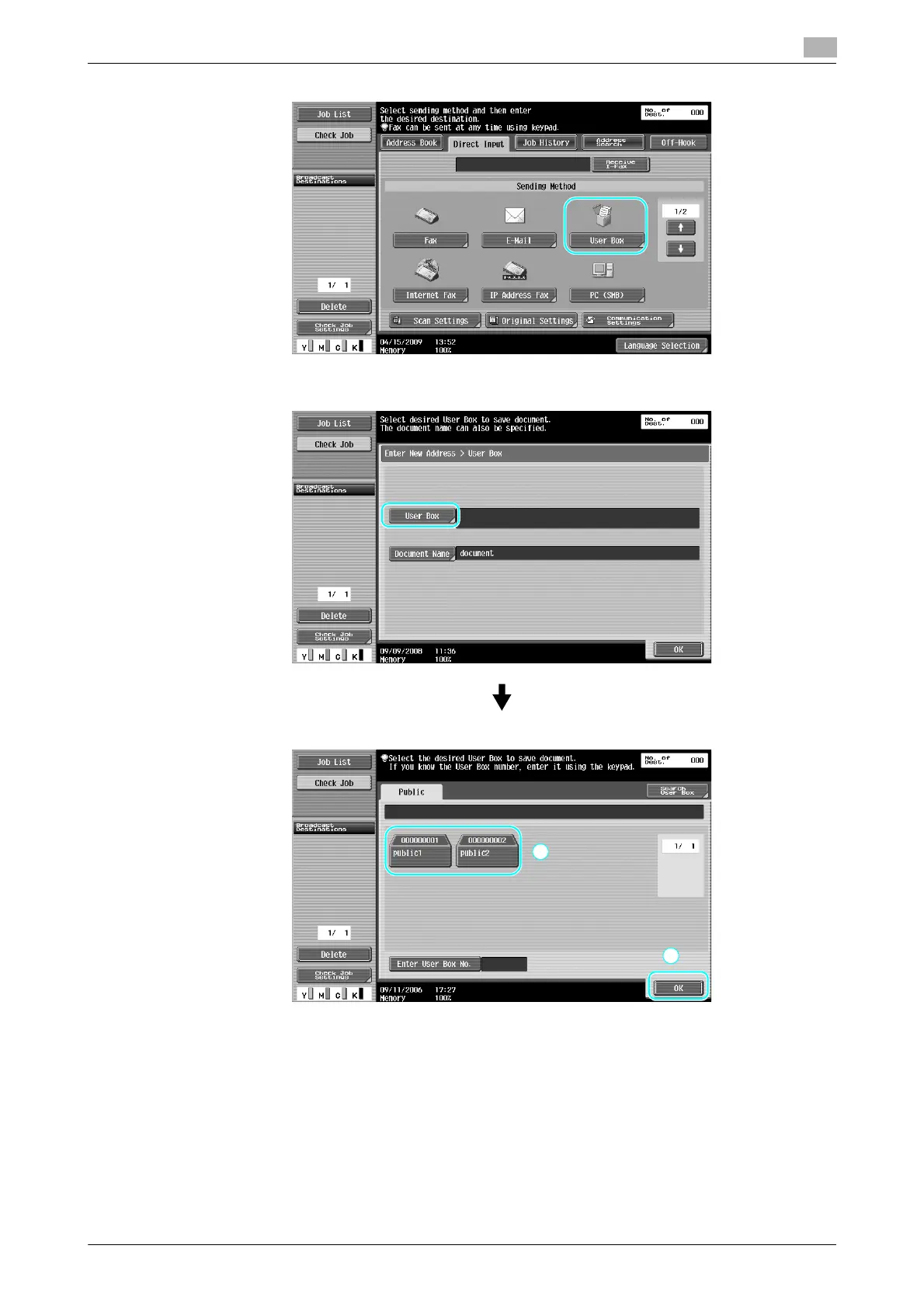 % The user box can also be specified by pressing [Enter User Box No.], then typing in the box number.