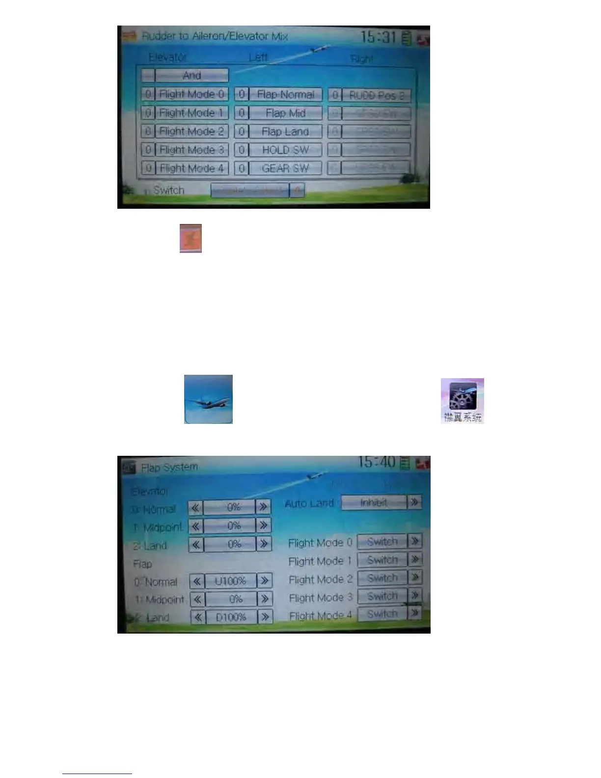 of elevator and three statuses of flap, respectively, through three-way flap control