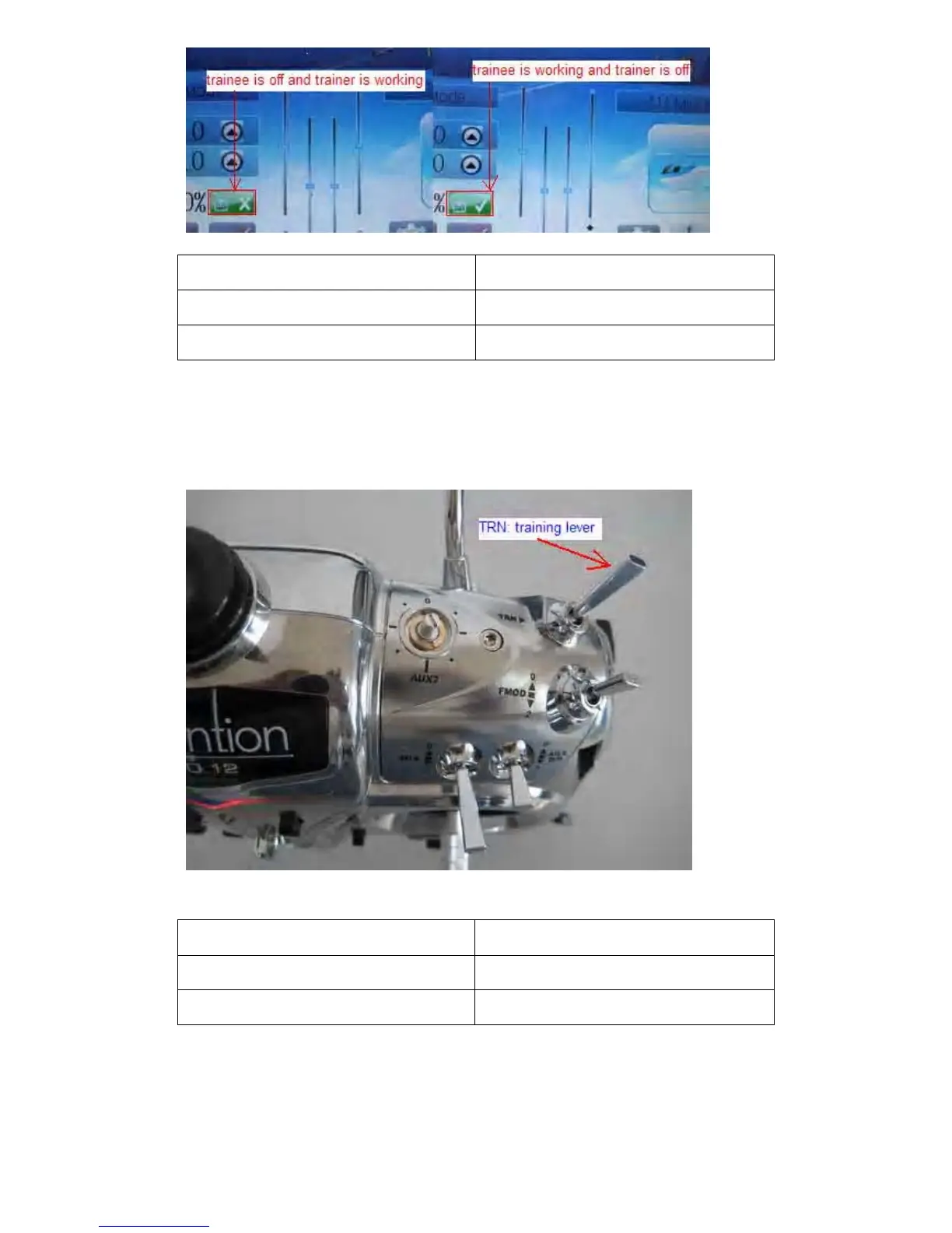 If the trainer’s finger pulls the training lever TRN, a “√” is shown in the linkage icon; if