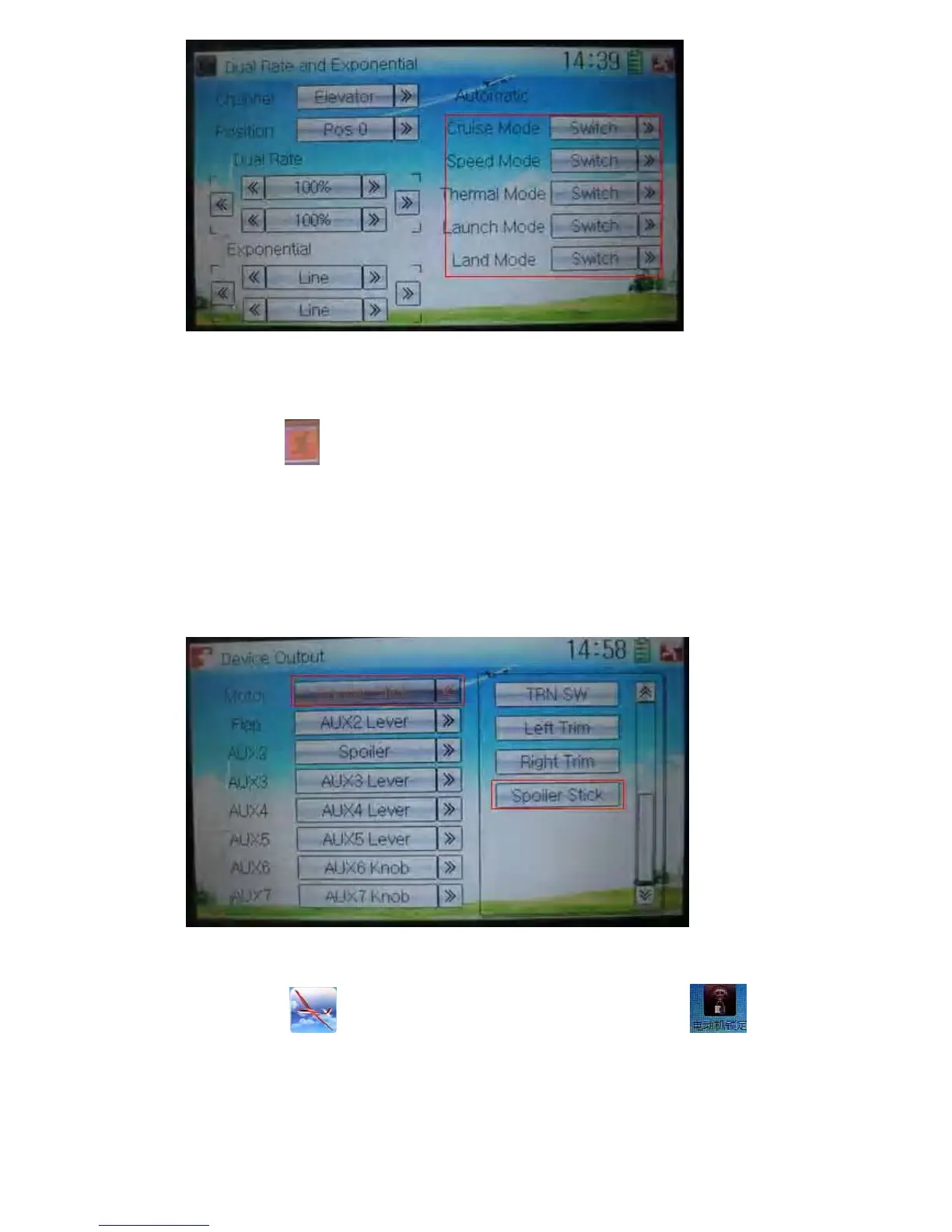 Device Output at Model Menu, which is used as Spoiler Stick and is activated. Refer to