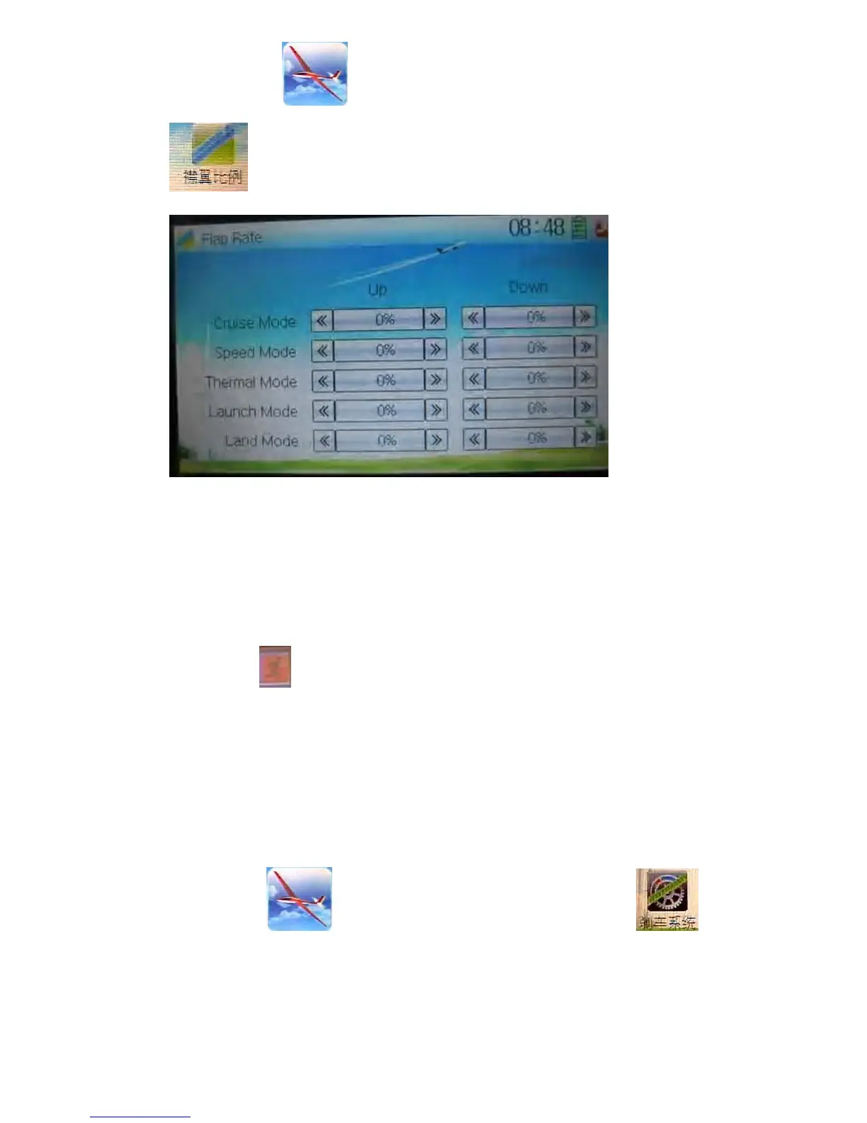 Touch the navigation mark of Up to change the flap rate when flap moving upward. It