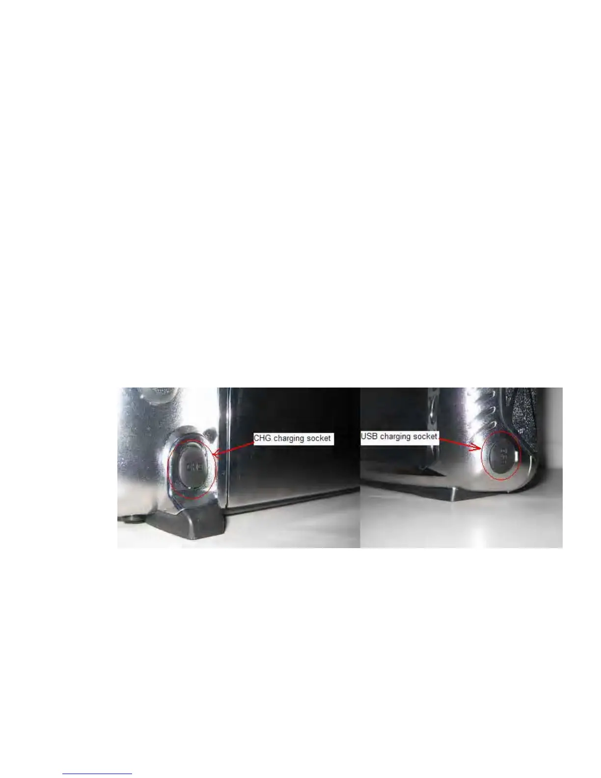 assorted power adapter is inserted into CHG socket, or the normal end of USB