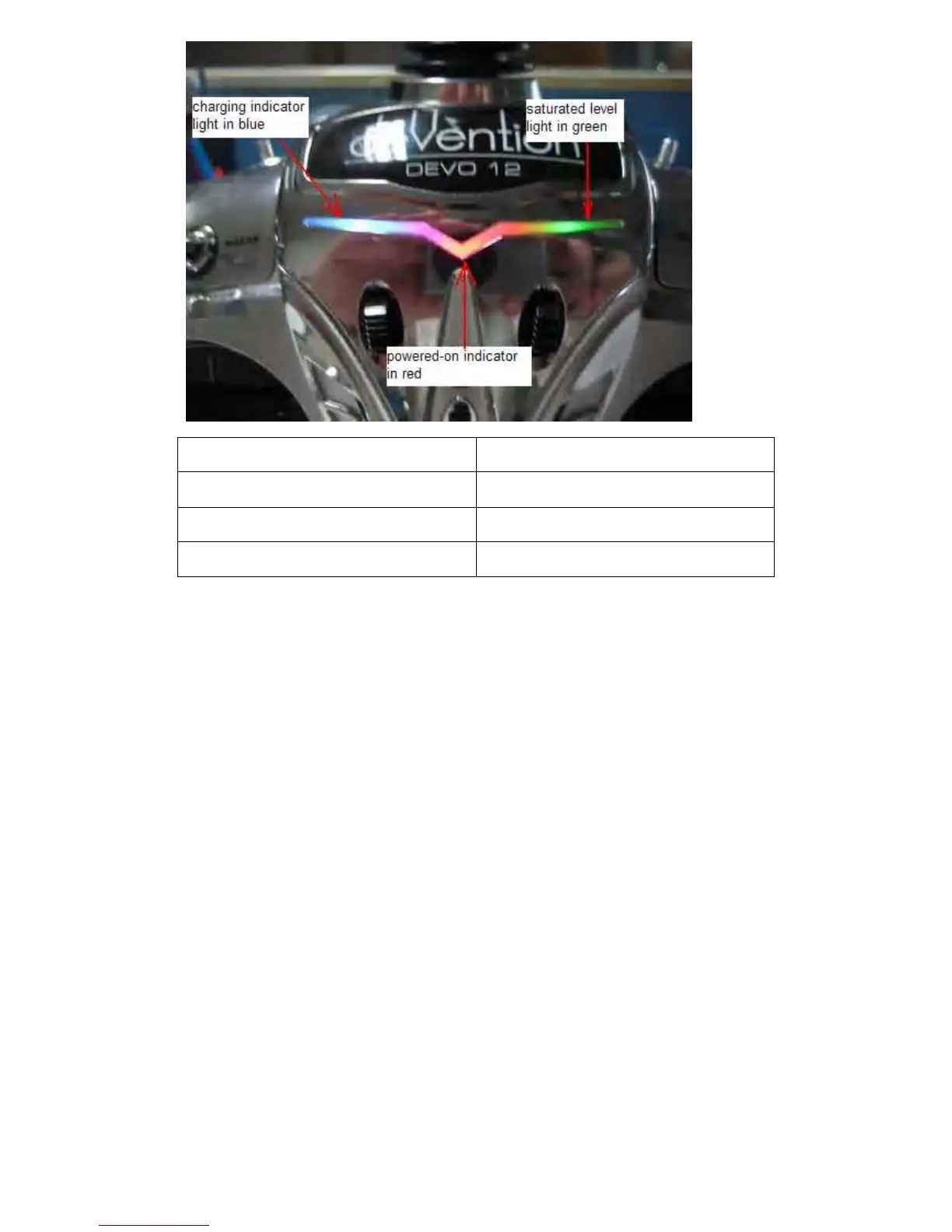 1.3) Saturation level indicator light: the green light is always lighting if the battery
