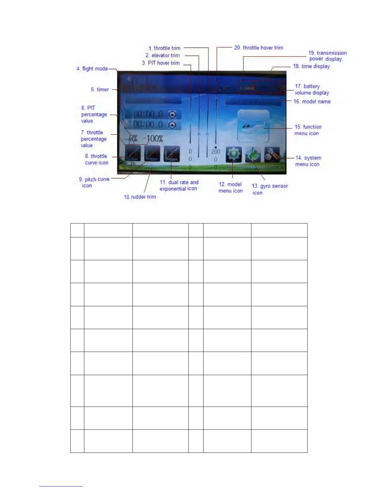 2 Elevator trim 12 Model menu